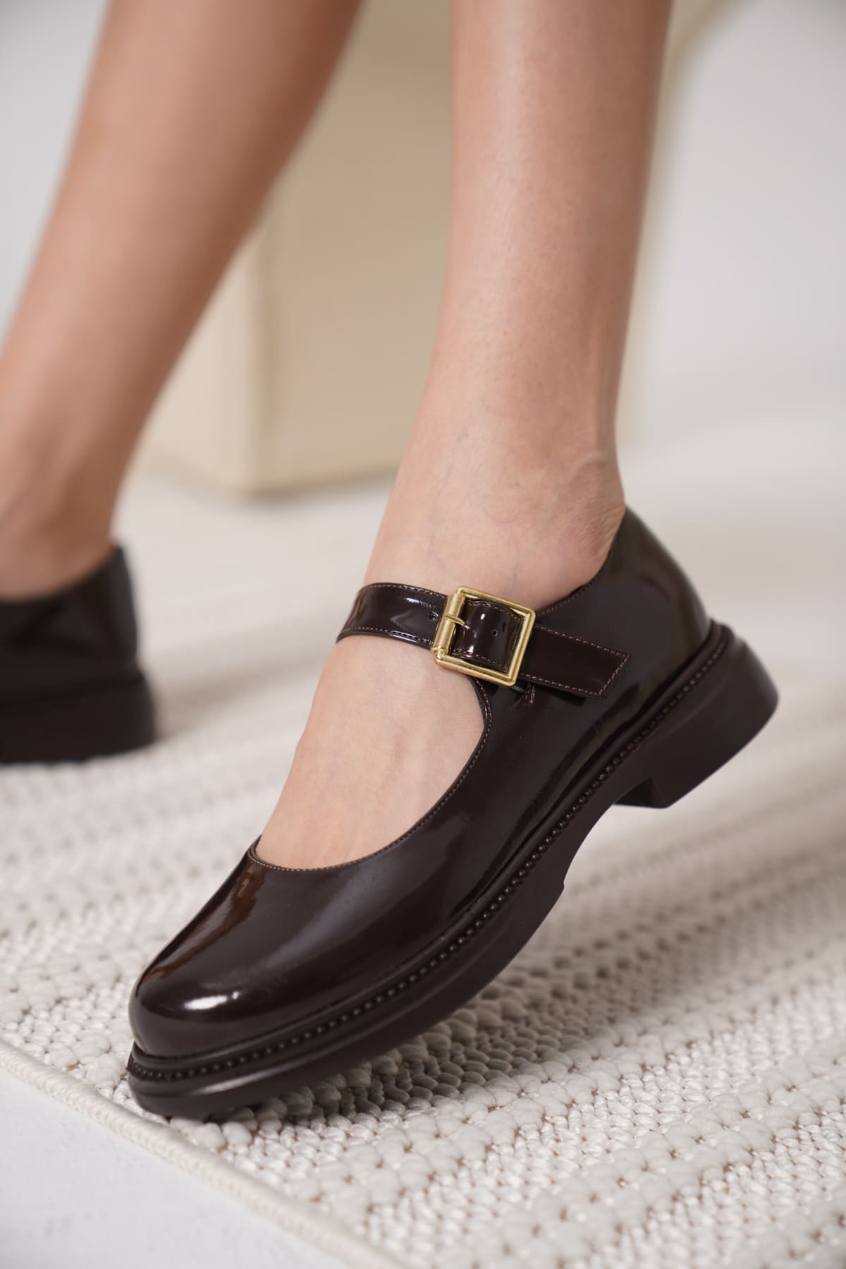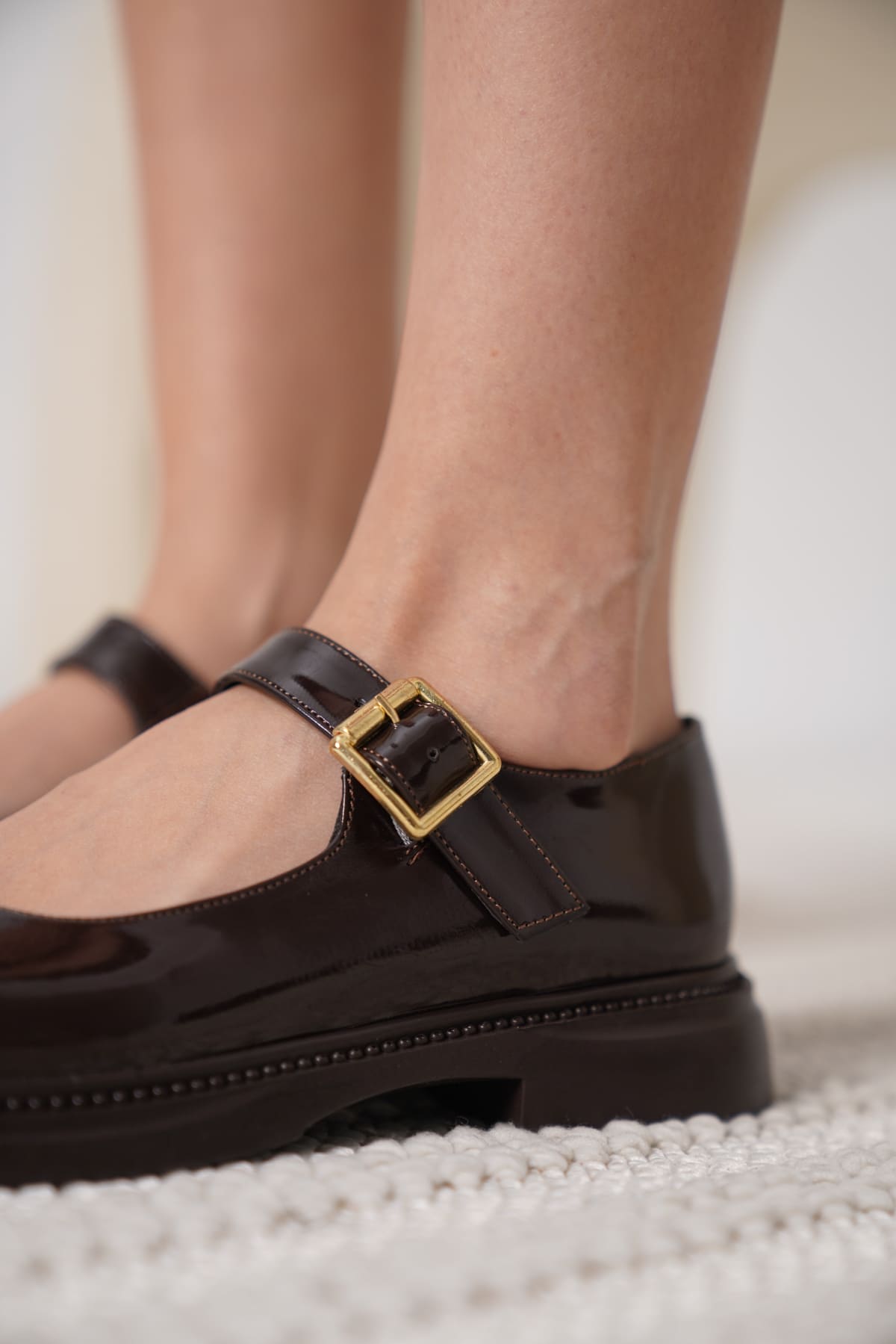 Acı Kahve Rugan Mary Jane Ayakkabı TR09MS01C