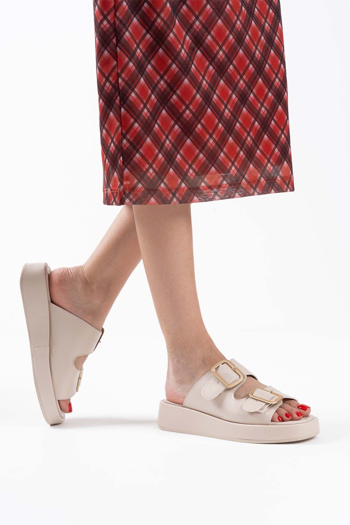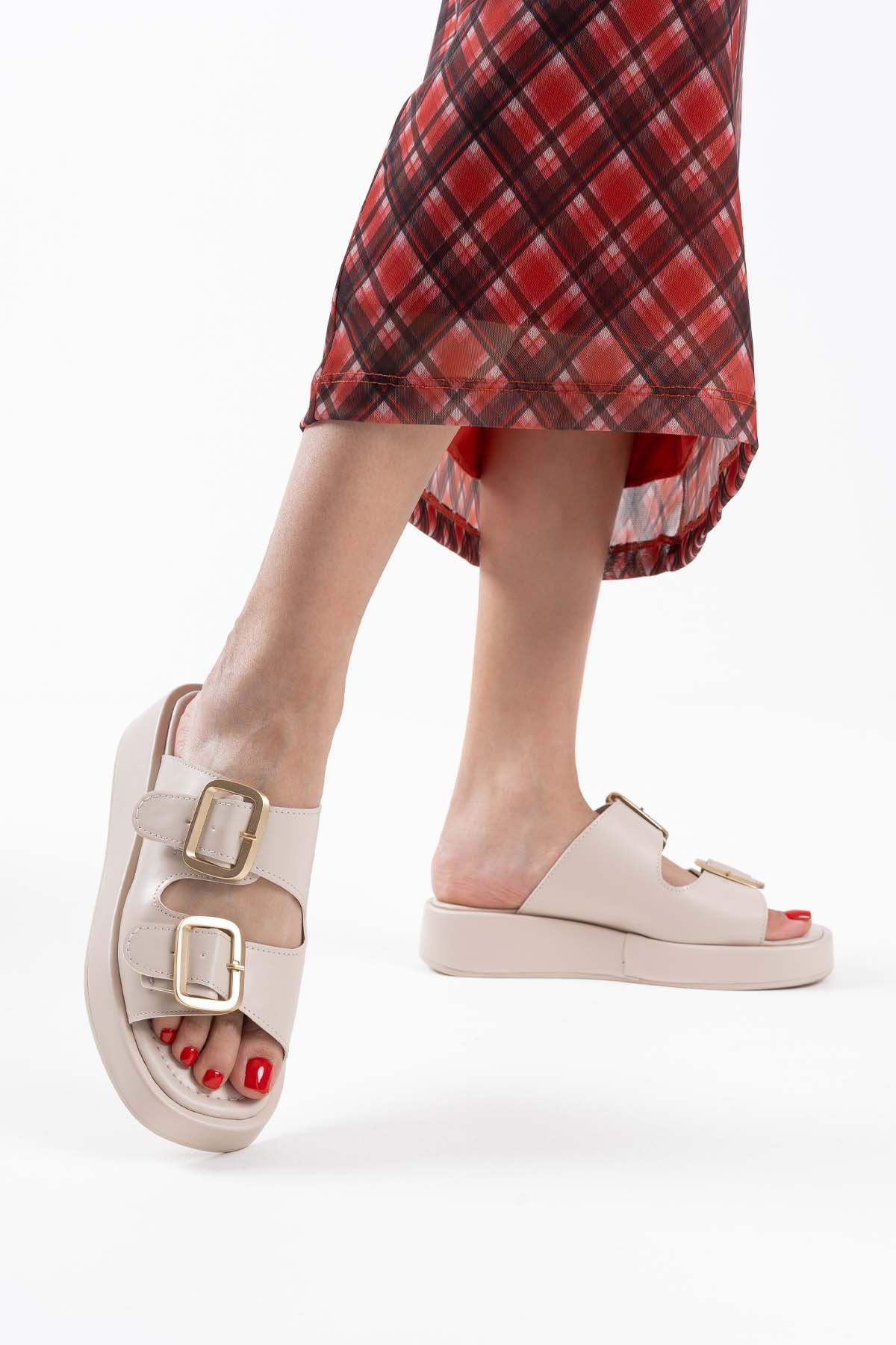 Bej Cilt Kadın Tokalı Terlik TR17MY01C