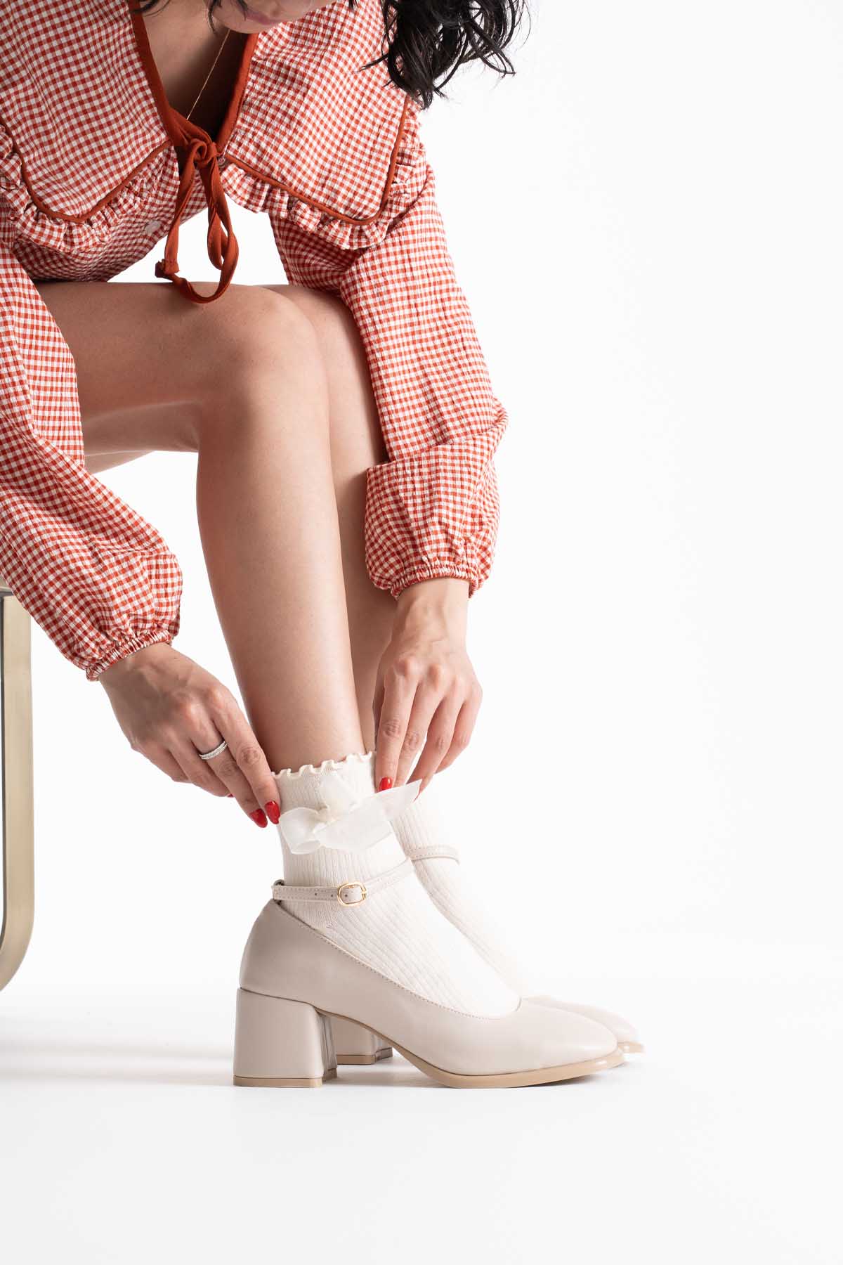 Bej Cilt Kadın Topuklu Ayakkabı TR02MS01B