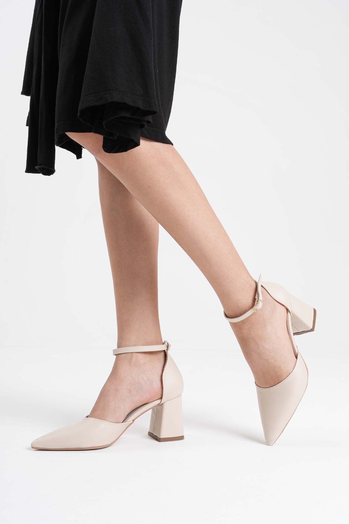 Bej Cilt Kadın Topuklu Ayakkabı TR08MS11G