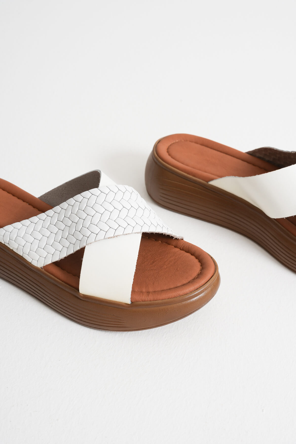 Beyaz Hakiki Deri Terlik TR31MY53M