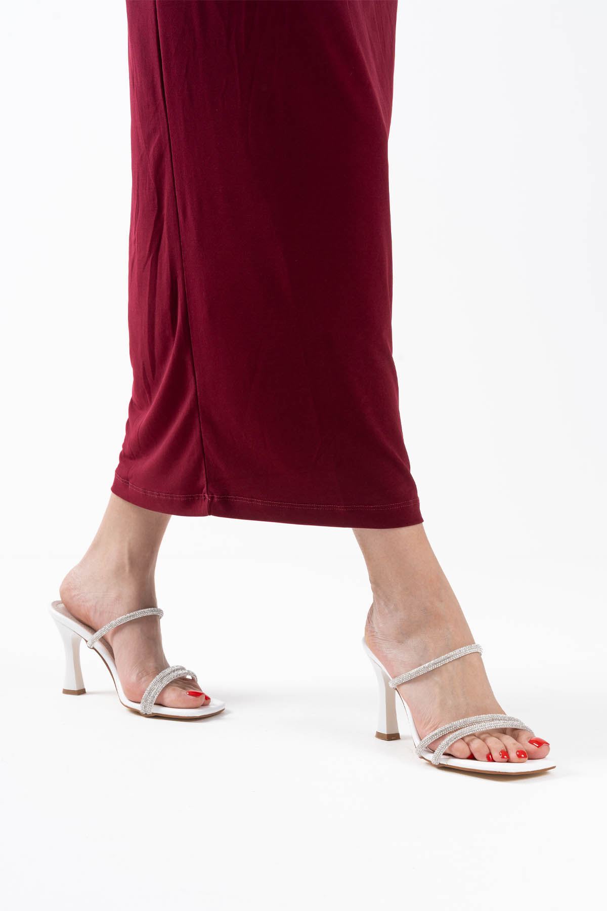Beyaz Taşlı İnce Bantlı Kadın Topuklu Terlik TR20MY01B