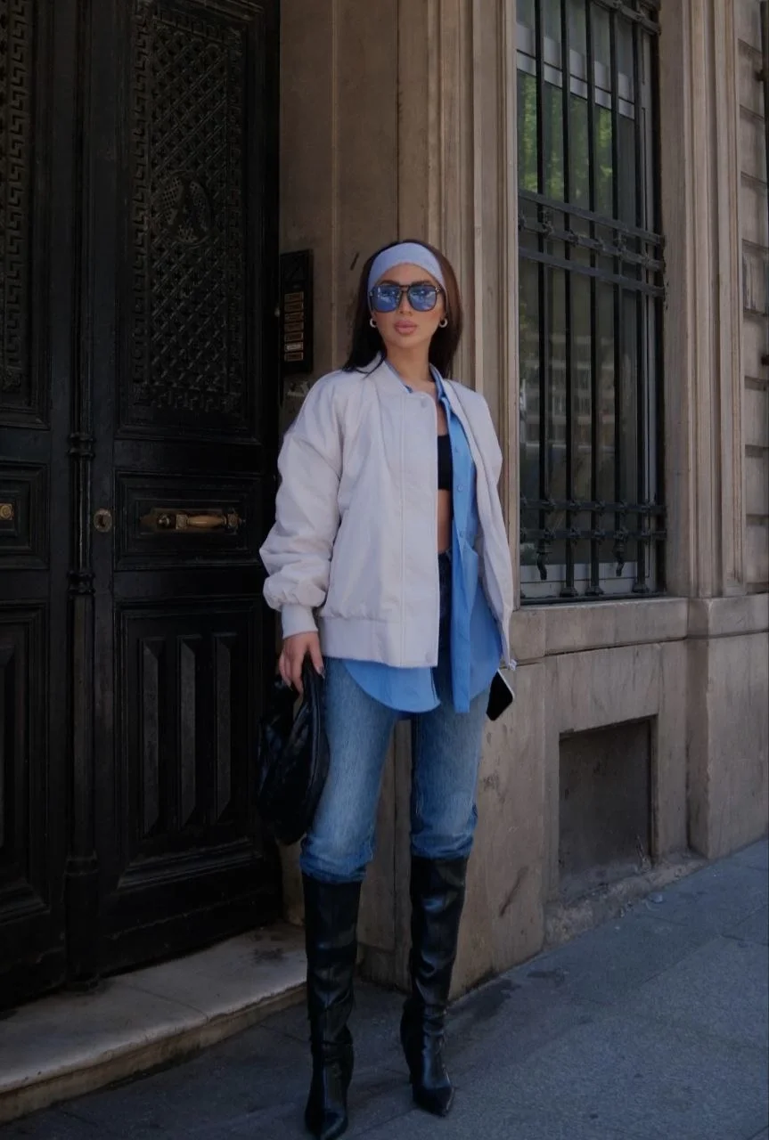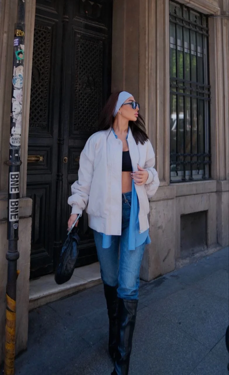 Cepli Bomber Ceket Mont - Beyaz