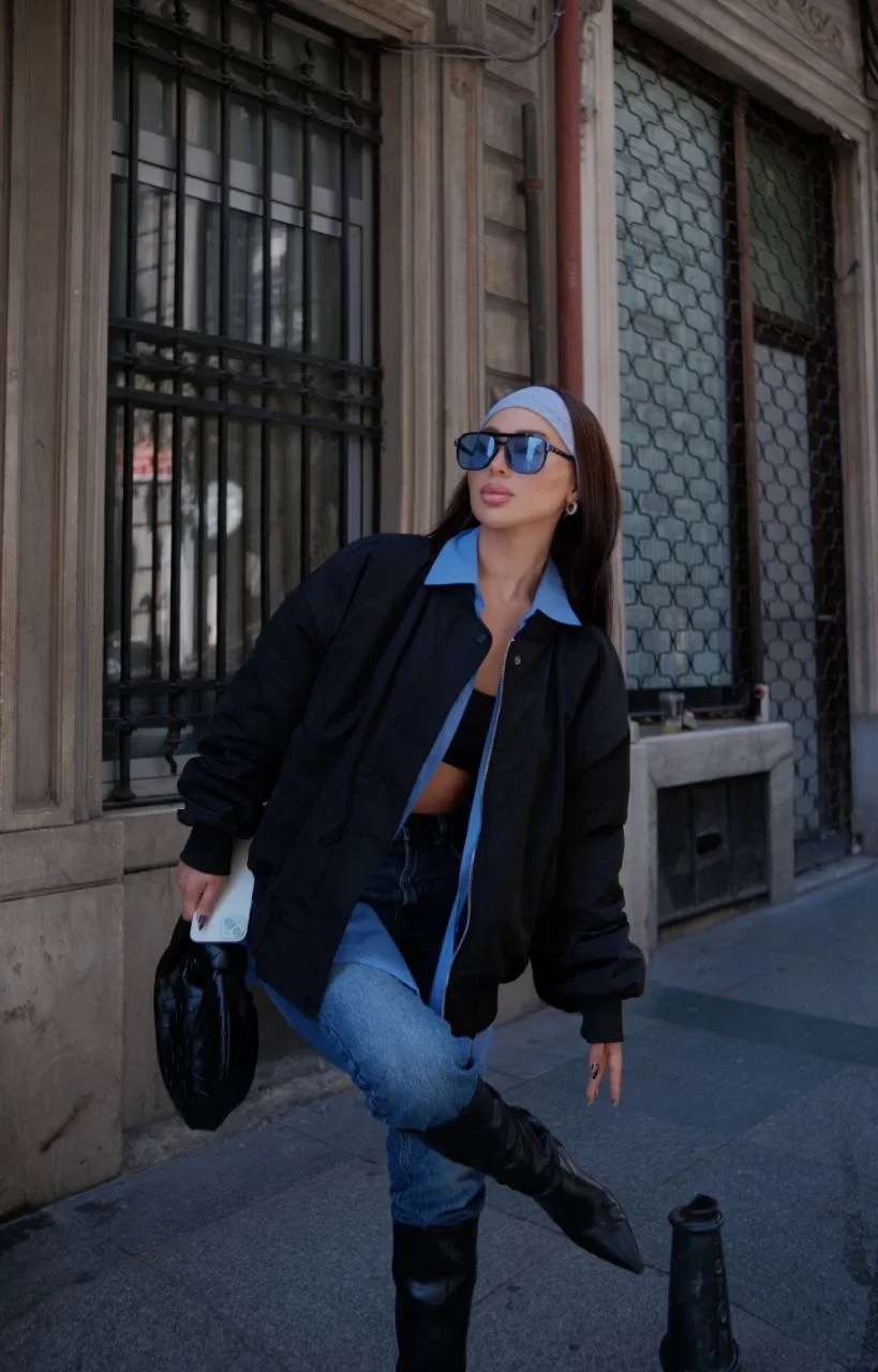 Cepli Bomber Ceket Mont - Siyah
