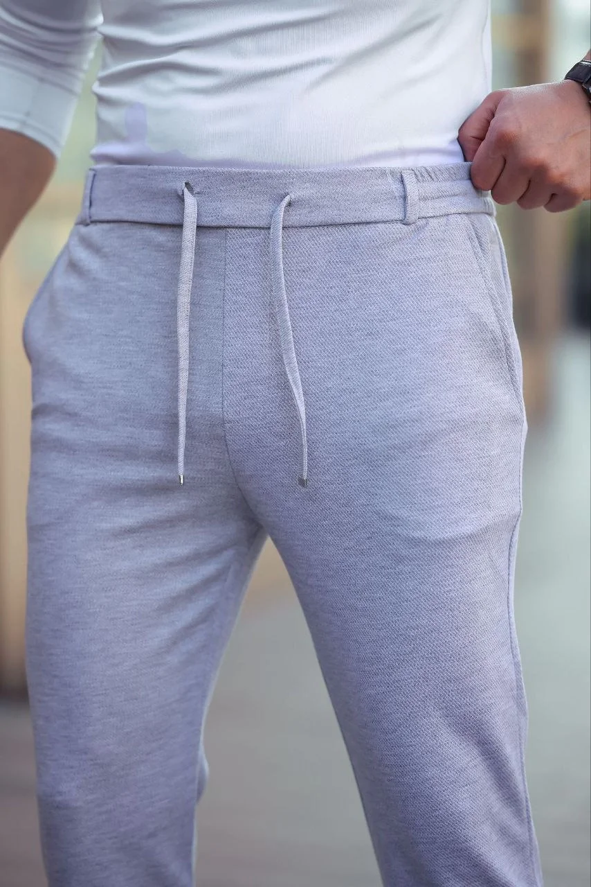 Erkek Diagonel Mikro dokulu Cepli Beli Lastilki Pantolon - Gri