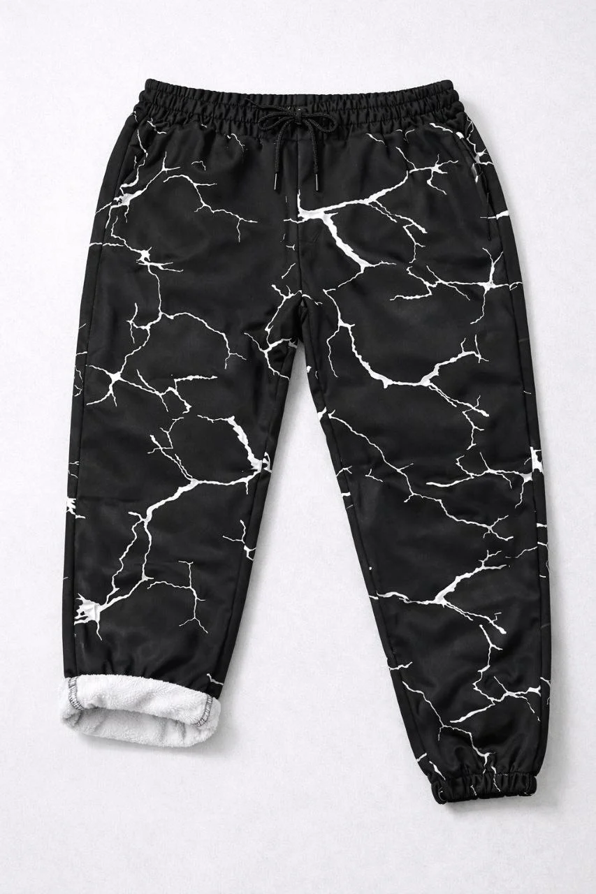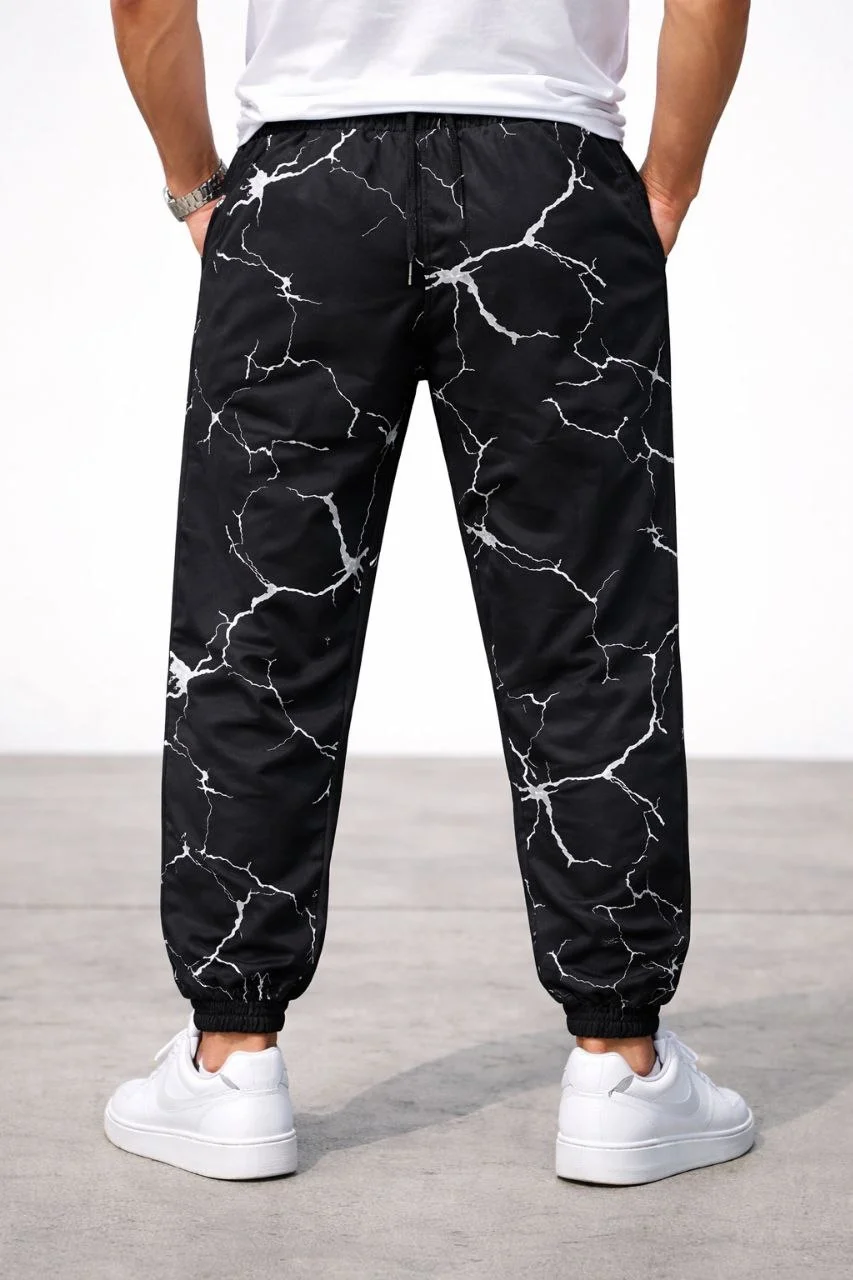 Erkek Dijital Baskılı Eşofman Altı Üç İplik Şardonlu Lastikli Paça Cepli Kalıp - Siyah
