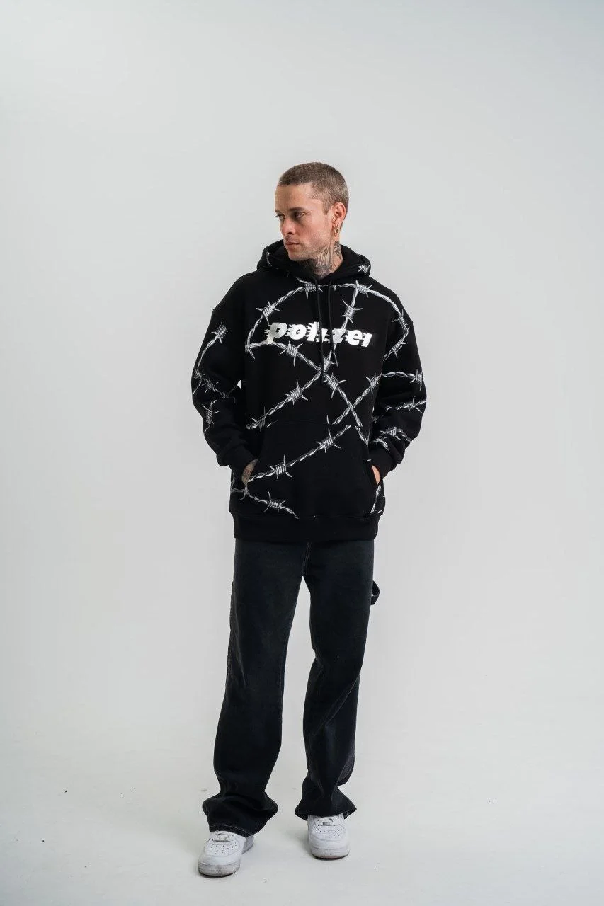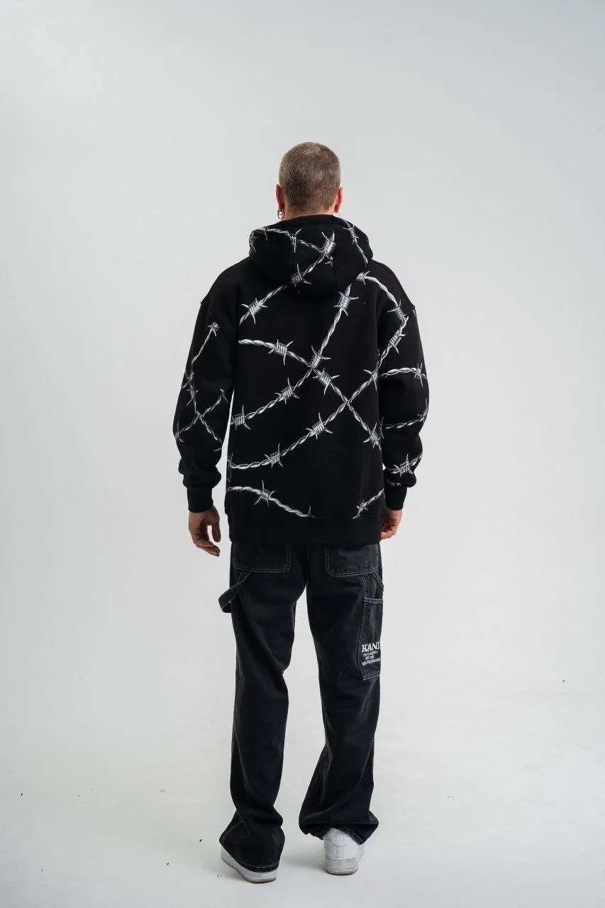 ERKEK Kapşonlu Varak ve Pano Baskılı SweatShirt- Siyah