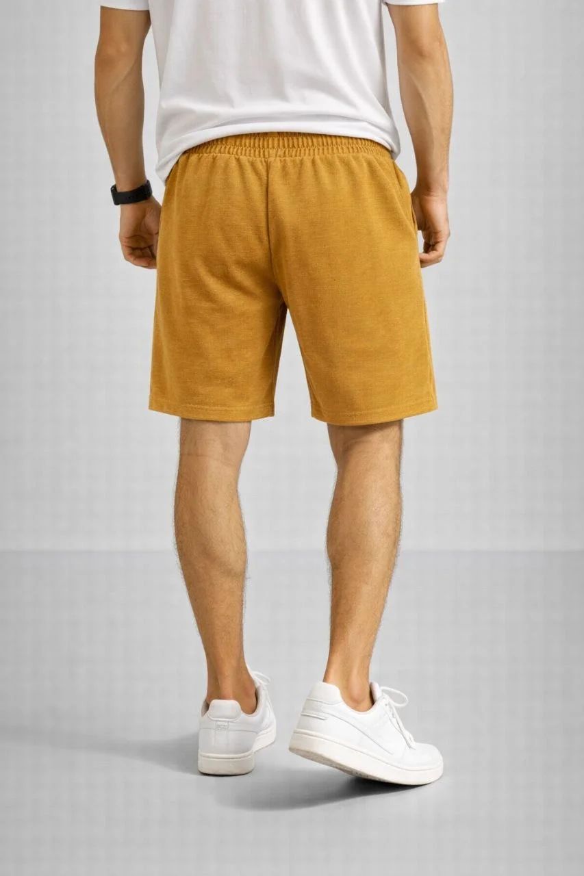 Erkek otoban Dokuma Şort Beli Lastikli Bağcıklı, Cepli, Rahat Kesim Günlük Yazlık Şort - Hardal