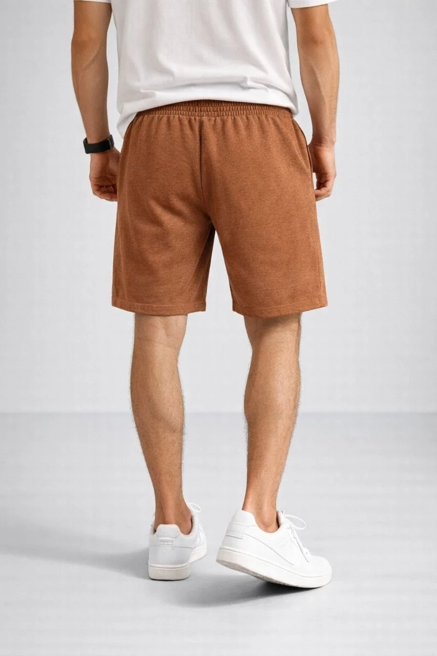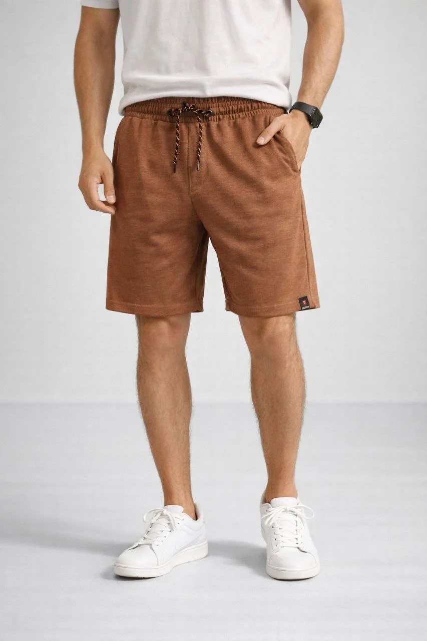 Erkek otoban Dokuma Şort Beli Lastikli Bağcıklı, Cepli, Rahat Kesim Günlük Yazlık Şort - Kahverengi