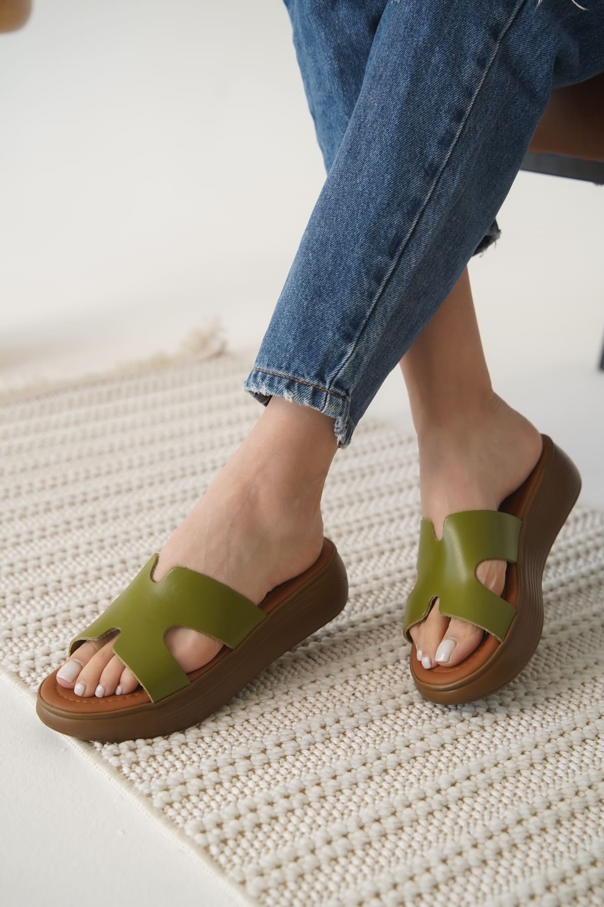 Haki Yeşil Hakiki Deri Terlik TR31MY54G
