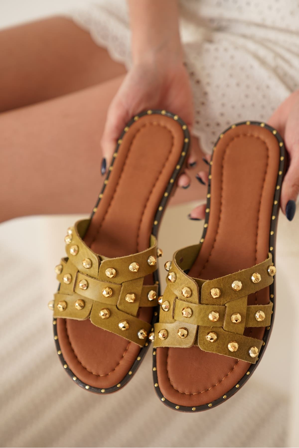 Haki Yeşili Hakiki Deri Terlik TR31MY68D