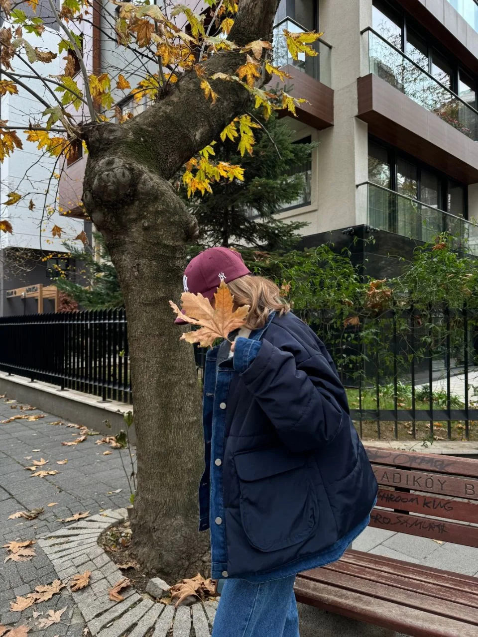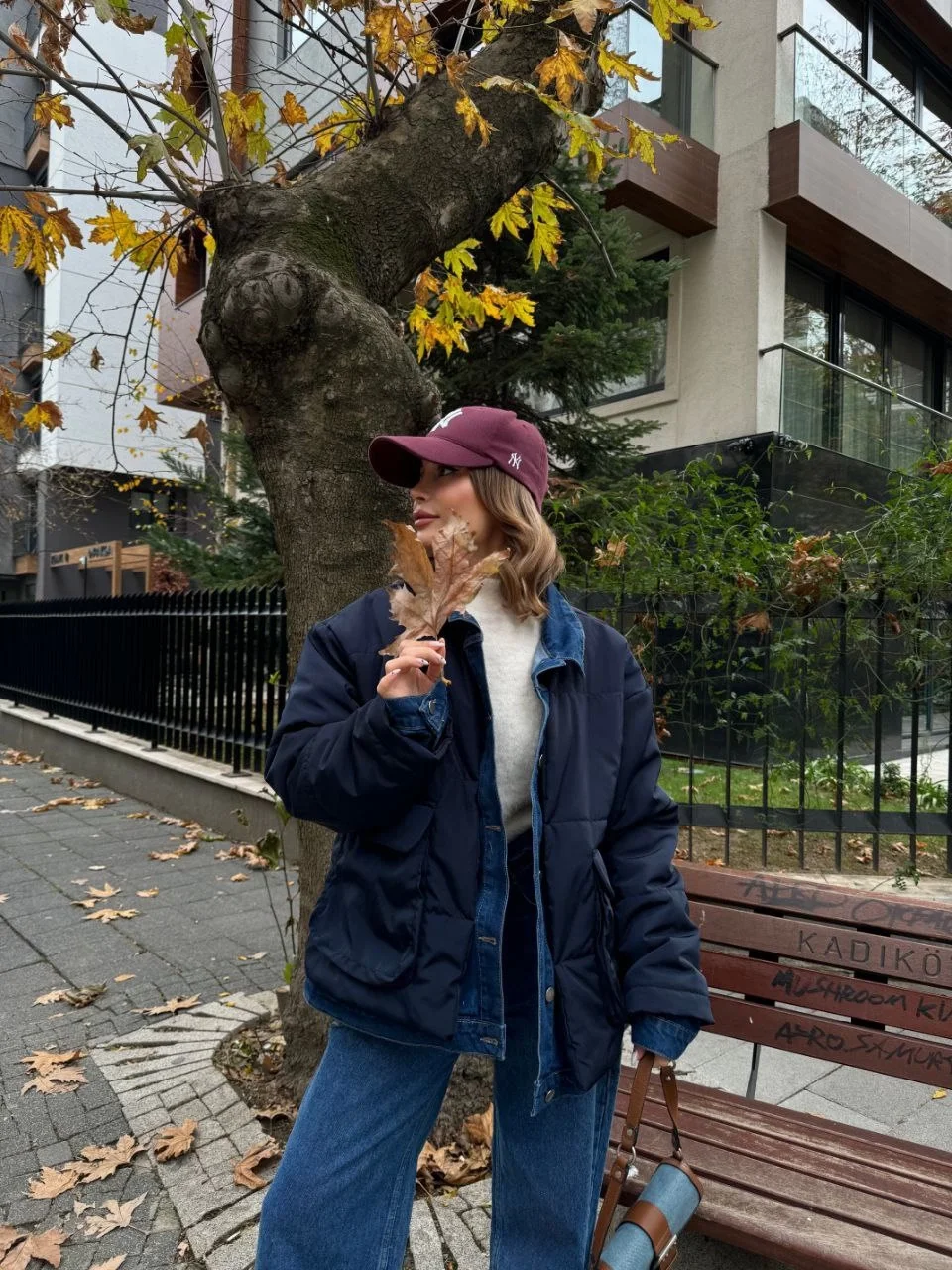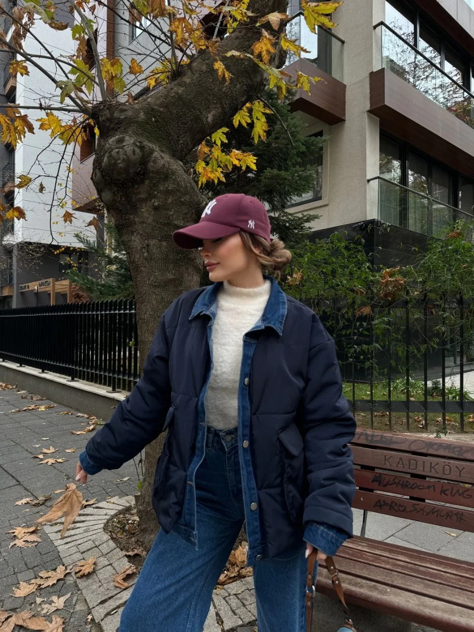 Jeans Detaylı Cıtcıtlı Ceket Mont - Lacivert