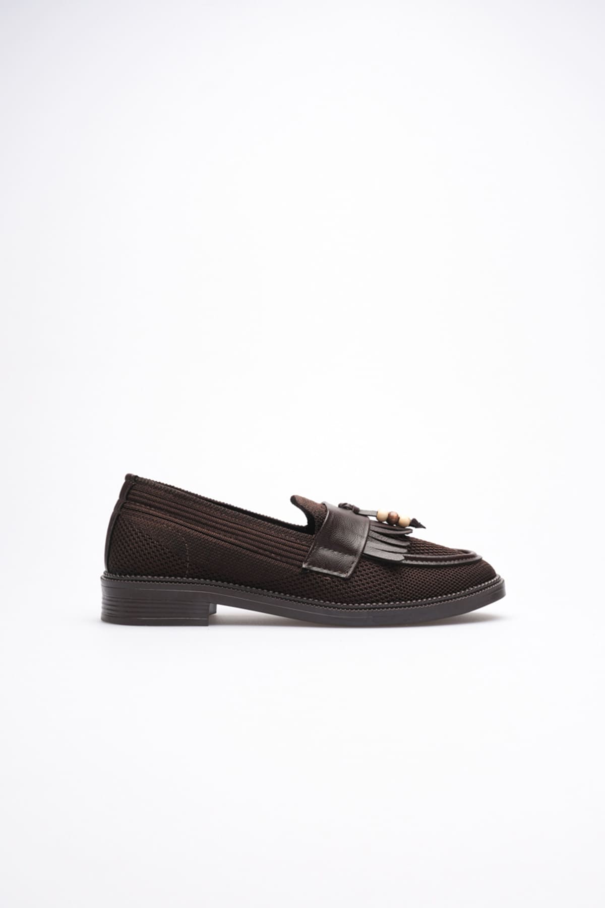 Kadın Acı Kahve Boncuk Püsküllü Günlük Kısa Topuklu Ayakkabı TR30MS01C