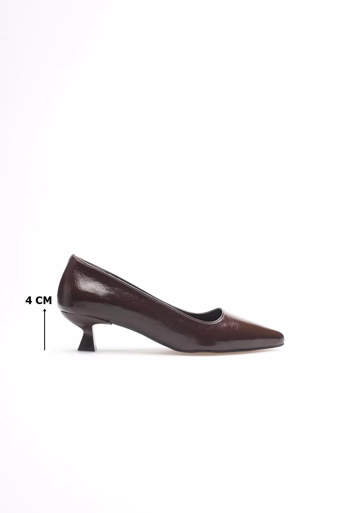 Kadın Acı Kahve Kırışık Rugan Kısa Topuklu Stiletto Ayakkabı TR20MS03D