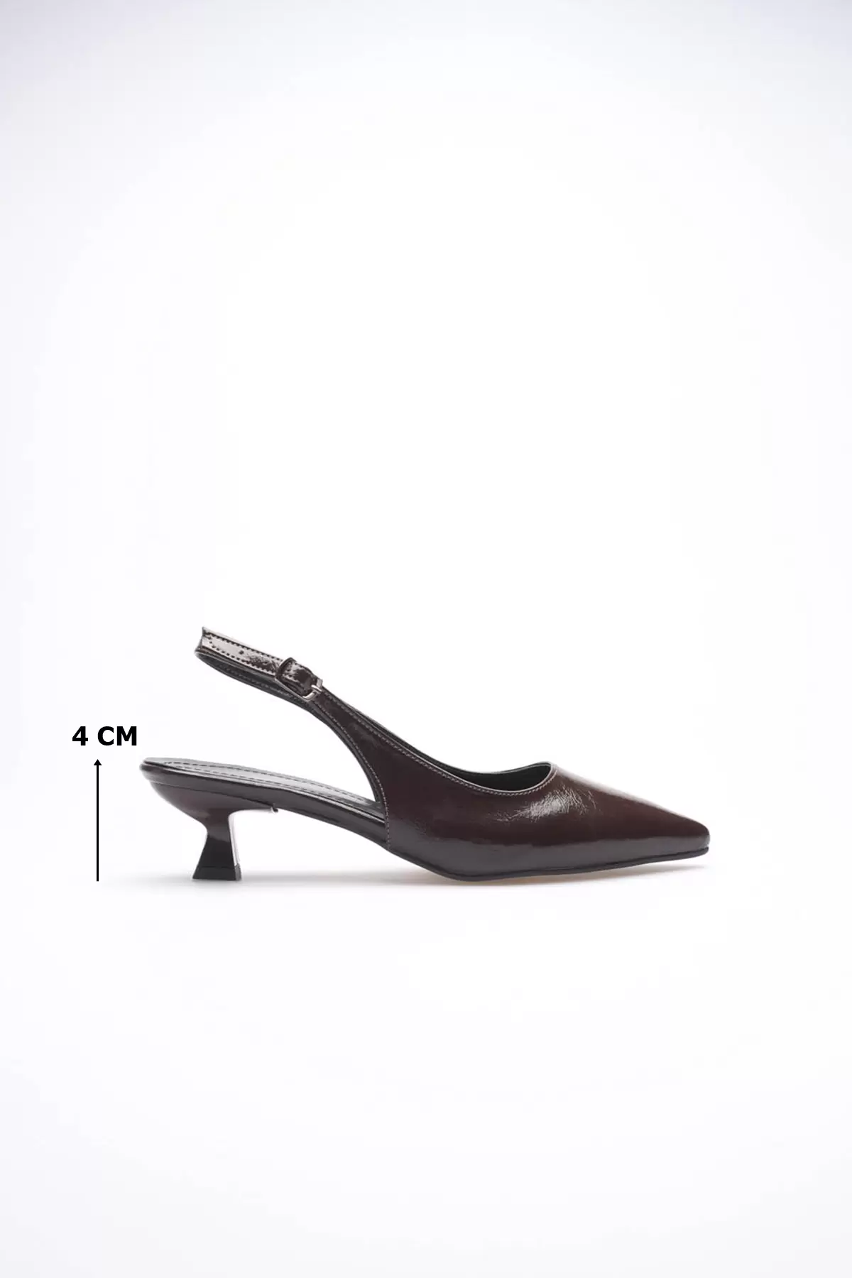 Kadın Acı Kahve Kırışık Rugan Sivri Burun Slingback Kısa Topuklu Ayakkabı TR20MS04D