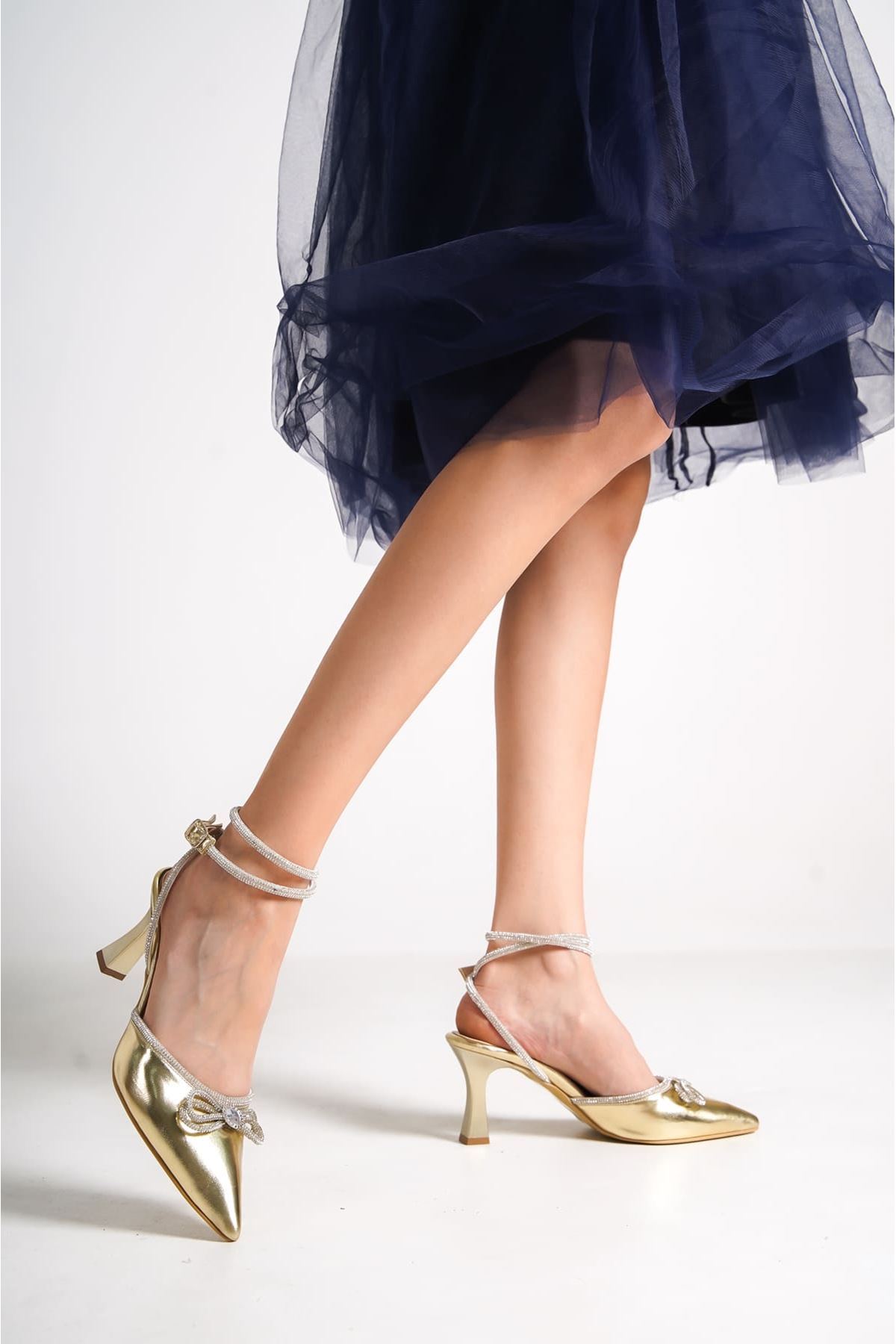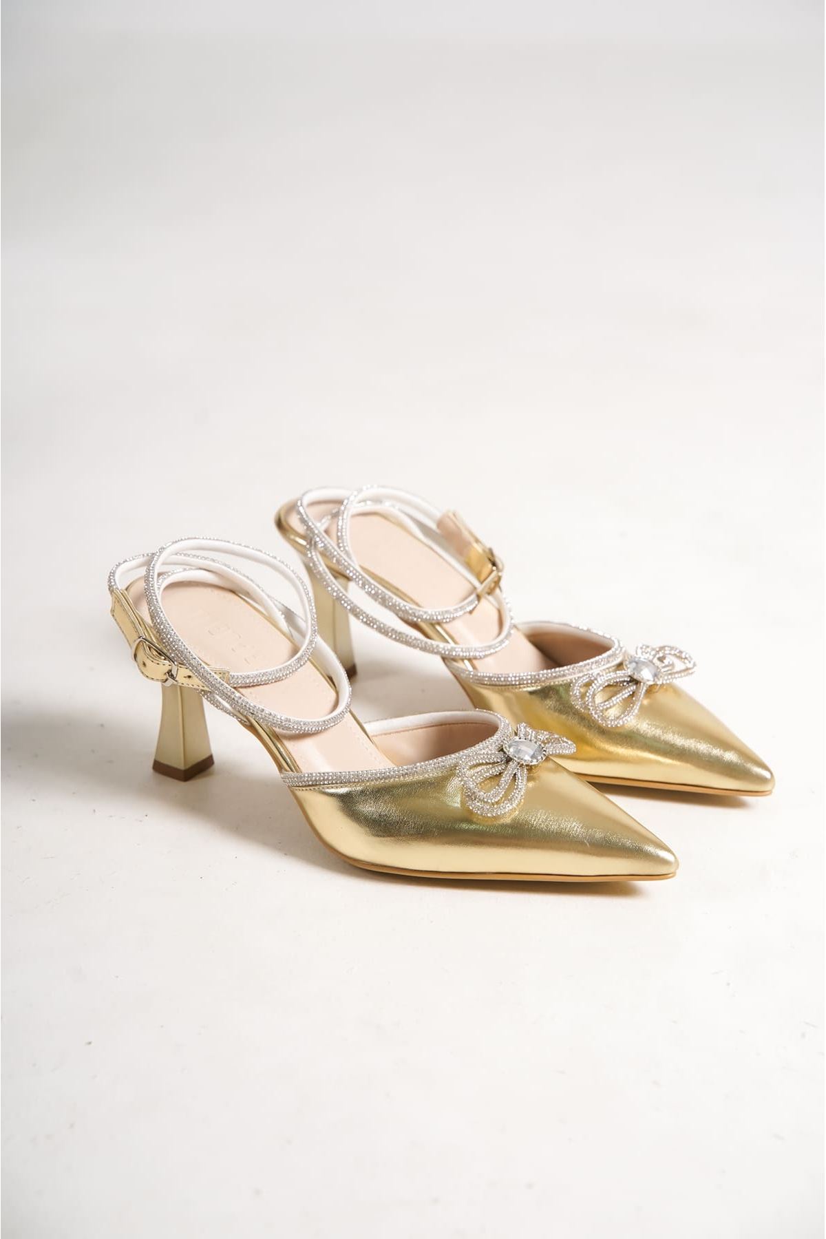 Kadın Altın Taşlı Topuklu Ayakkabı TR12MS05C