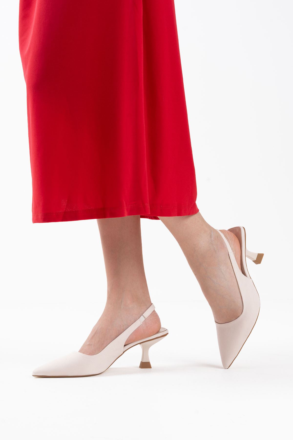 Kadın Bej Saten Topuklu Ayakkabı TR08MS08B