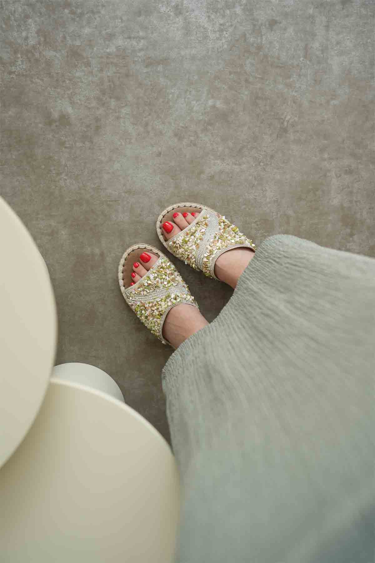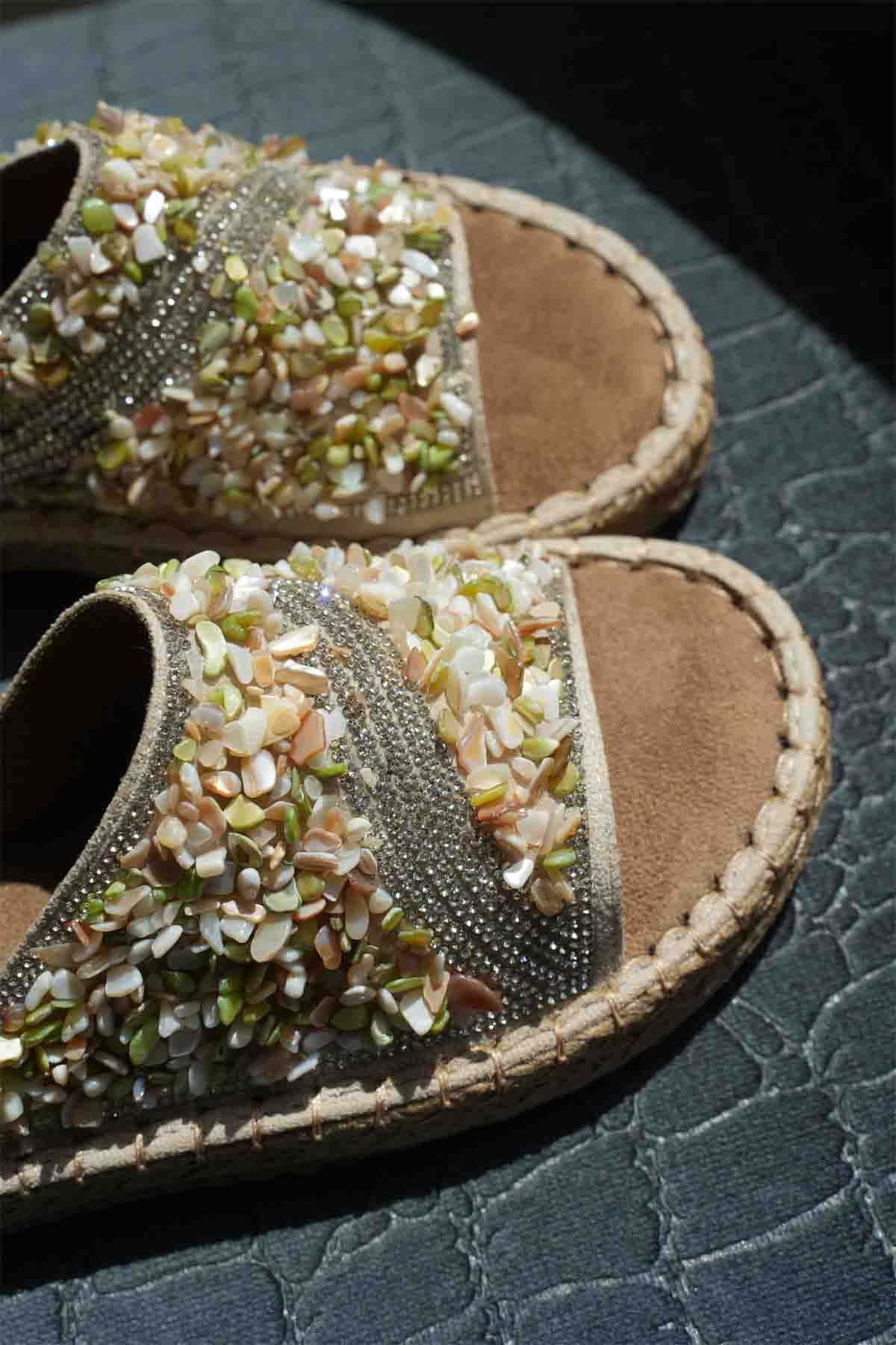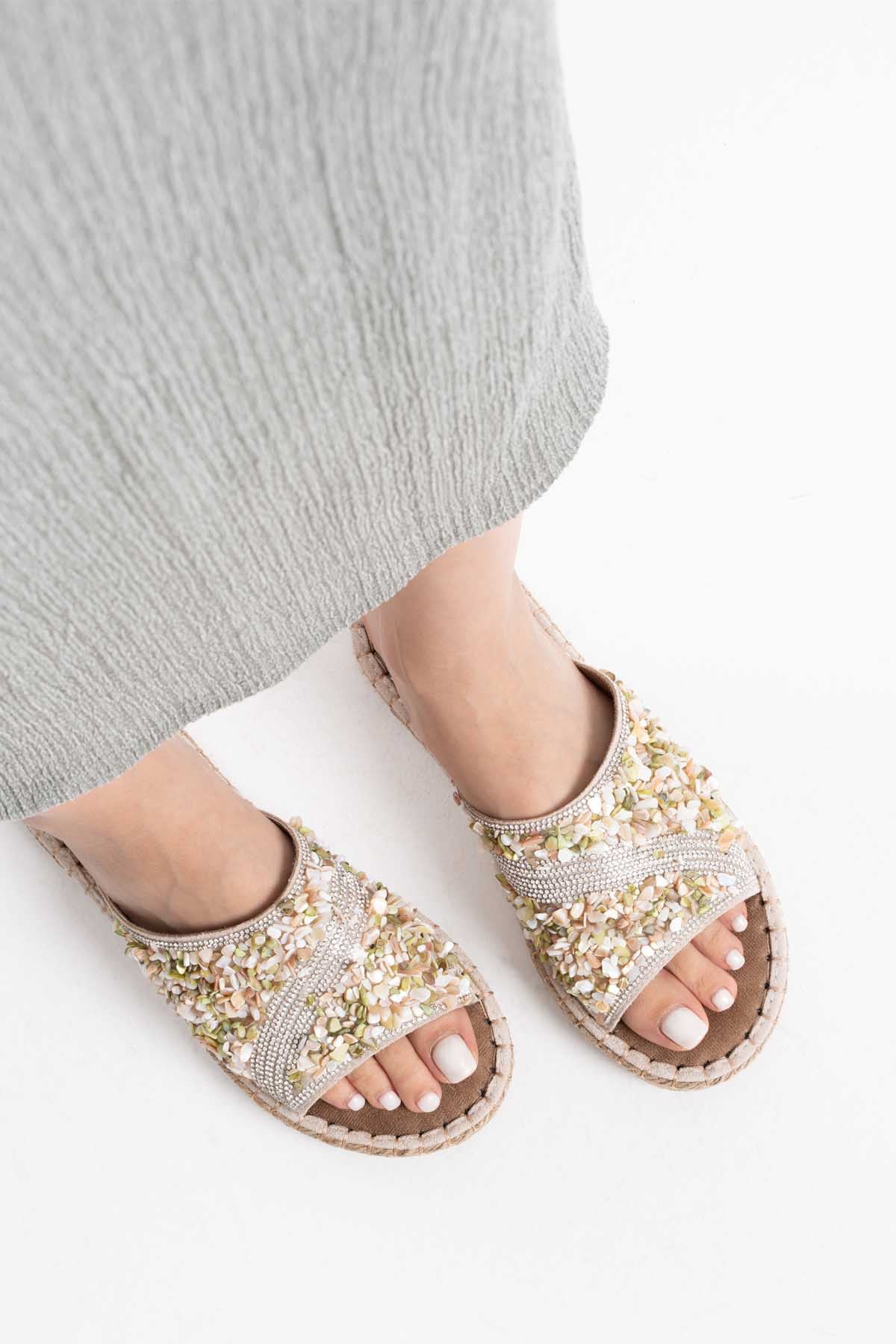 Kadın Bej Taş İşlemeli Terlik TR35MY08B