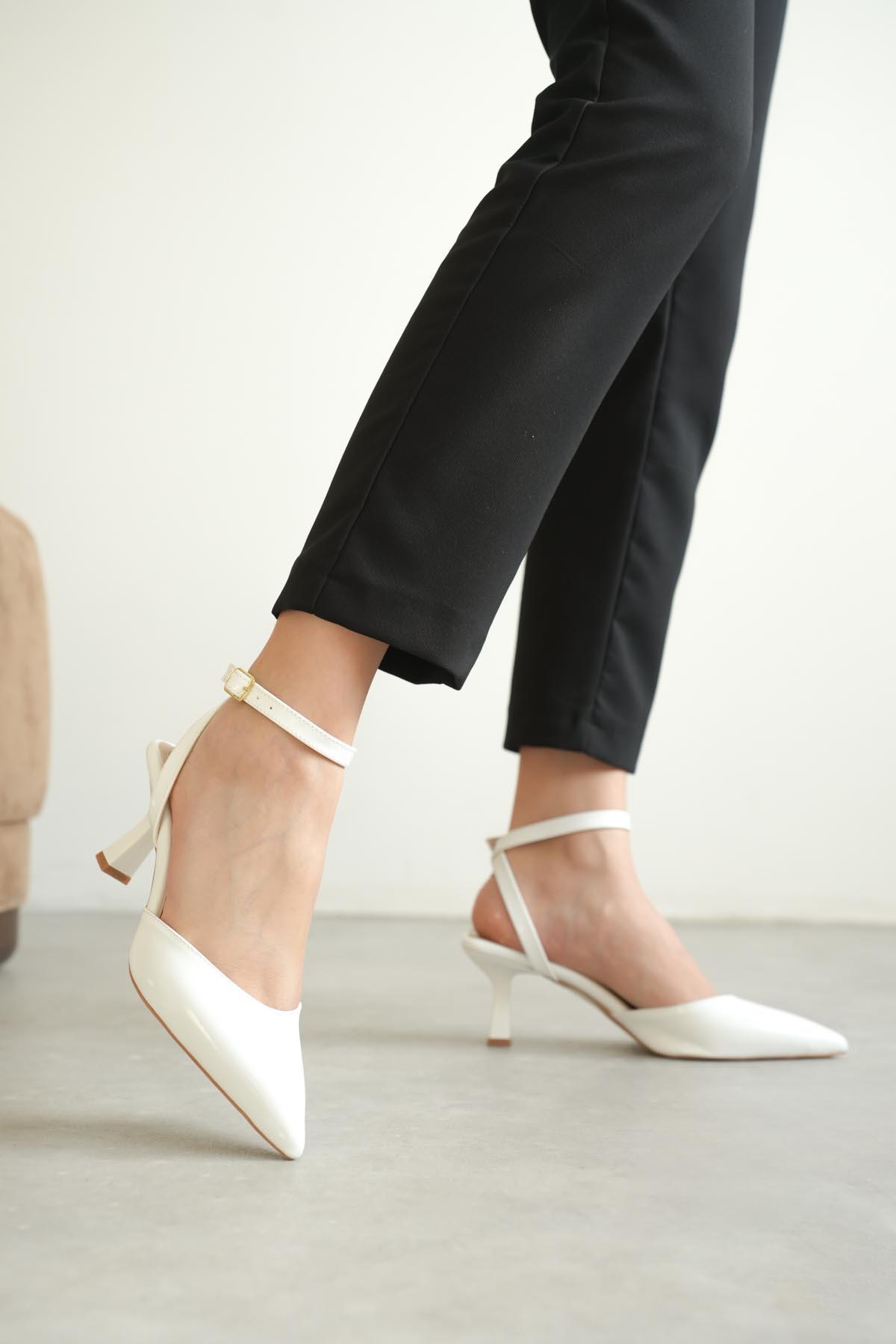 Kadın Beyaz Rugan Topuklu Ayakkabı TR03MS02B