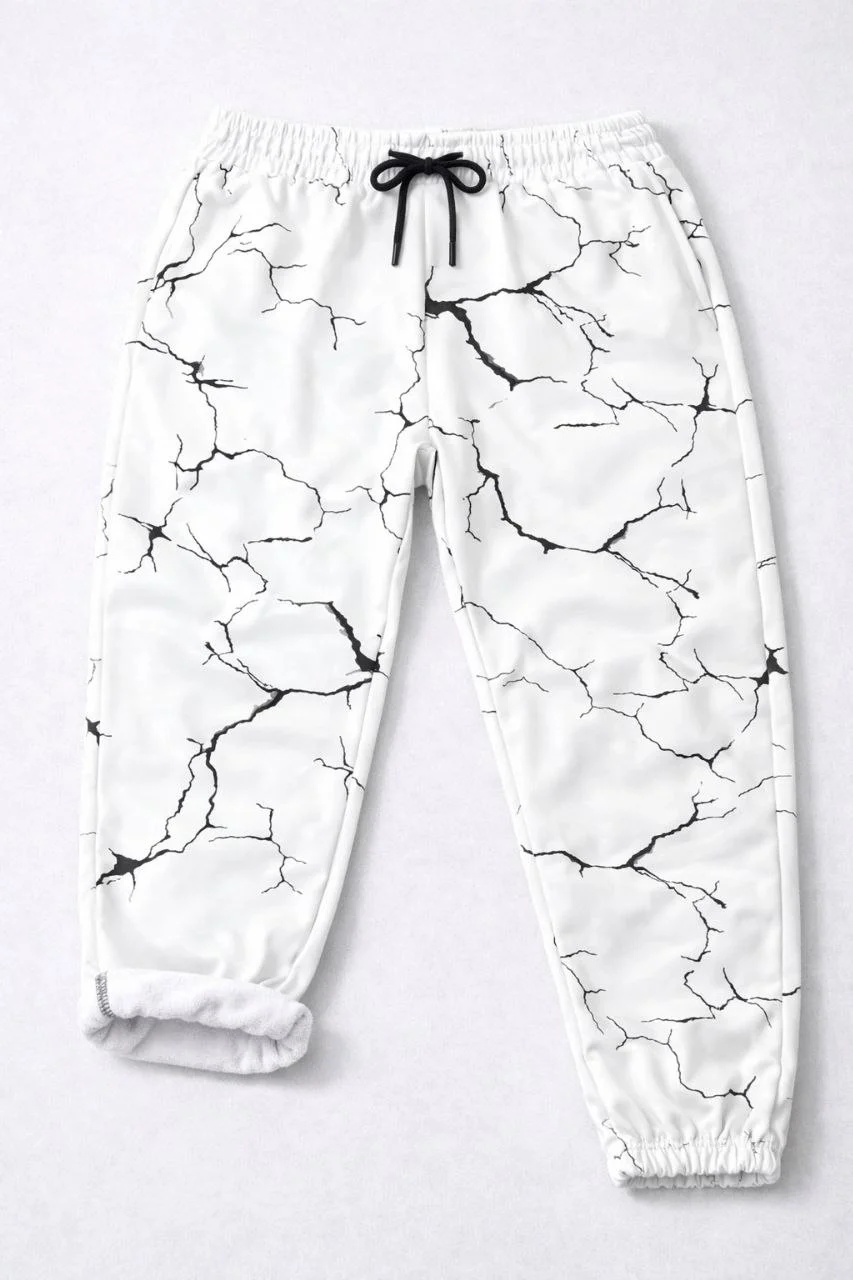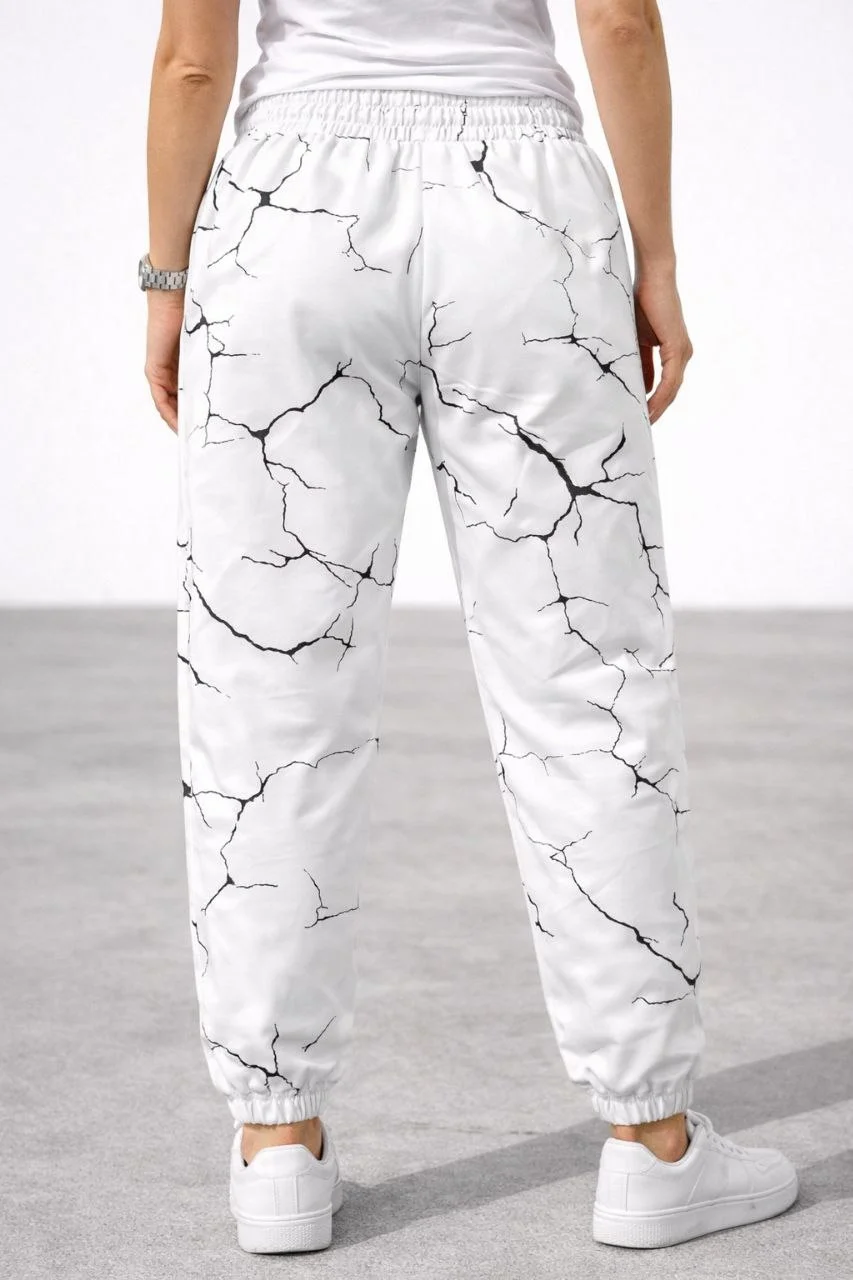 Kadın Dijital Baskılı Eşofman Altı Üç İplik Şardonlu Lastikli Paça Cepli Kalıp - Beyaz