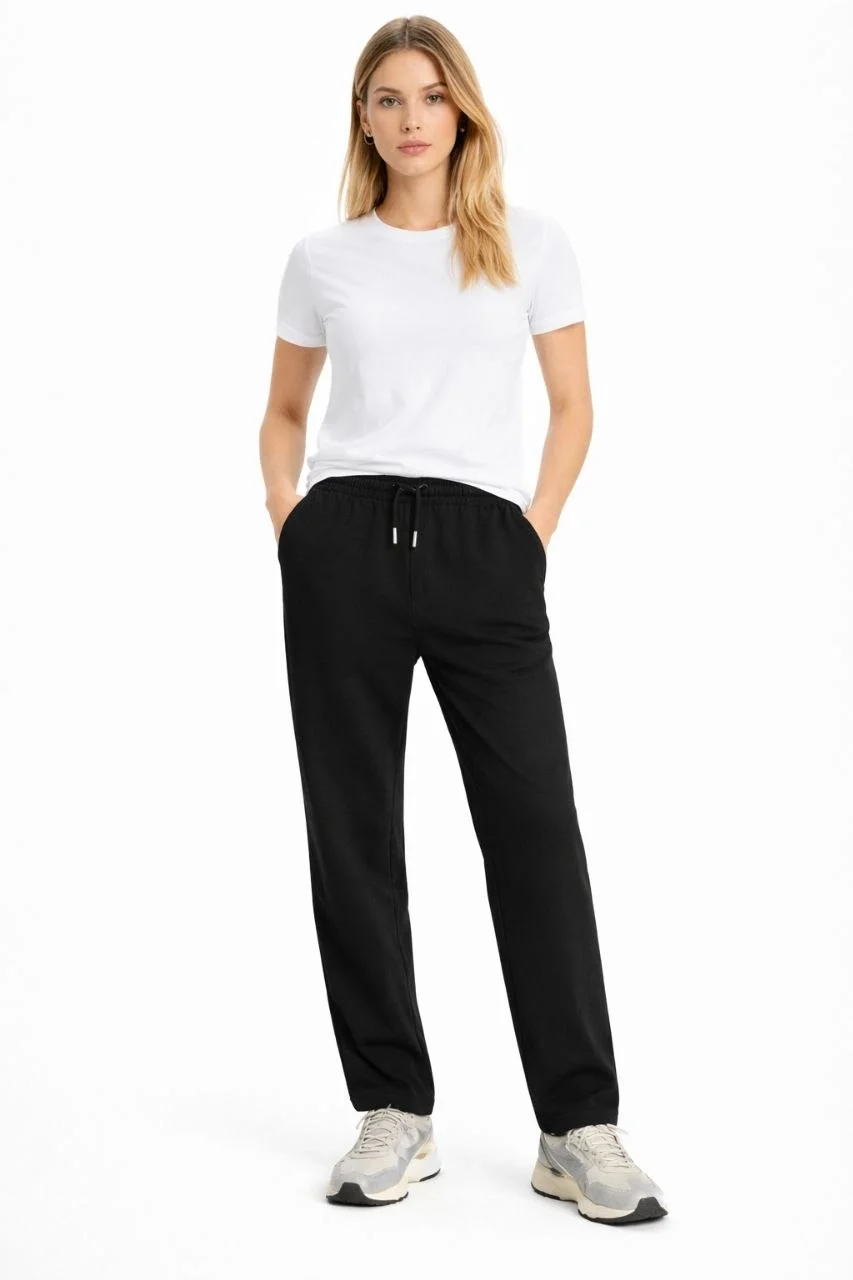 Kadın Düz Paça Beli Lastikli İpli Günlük Spor Eşofman Altı Rahat Fit - Siyah
