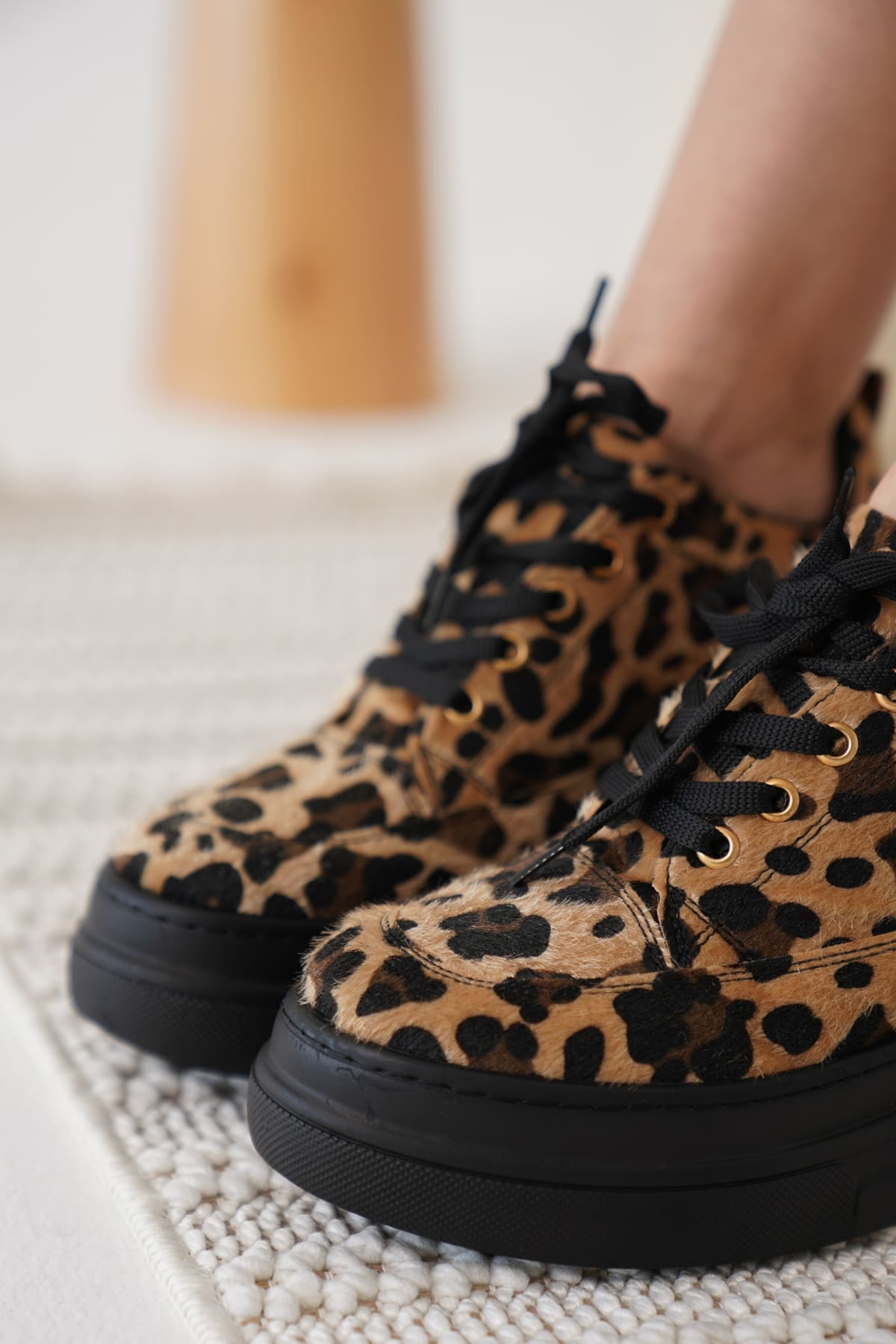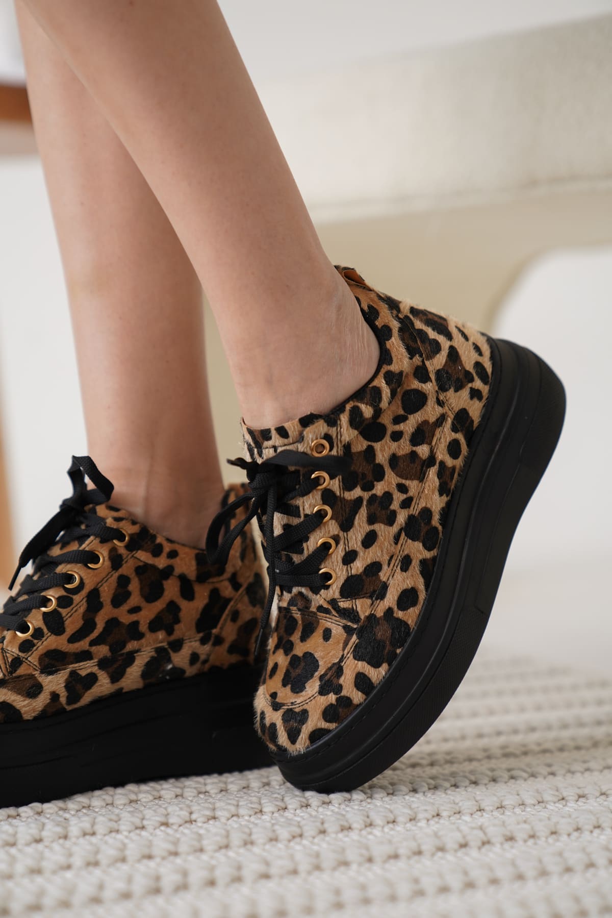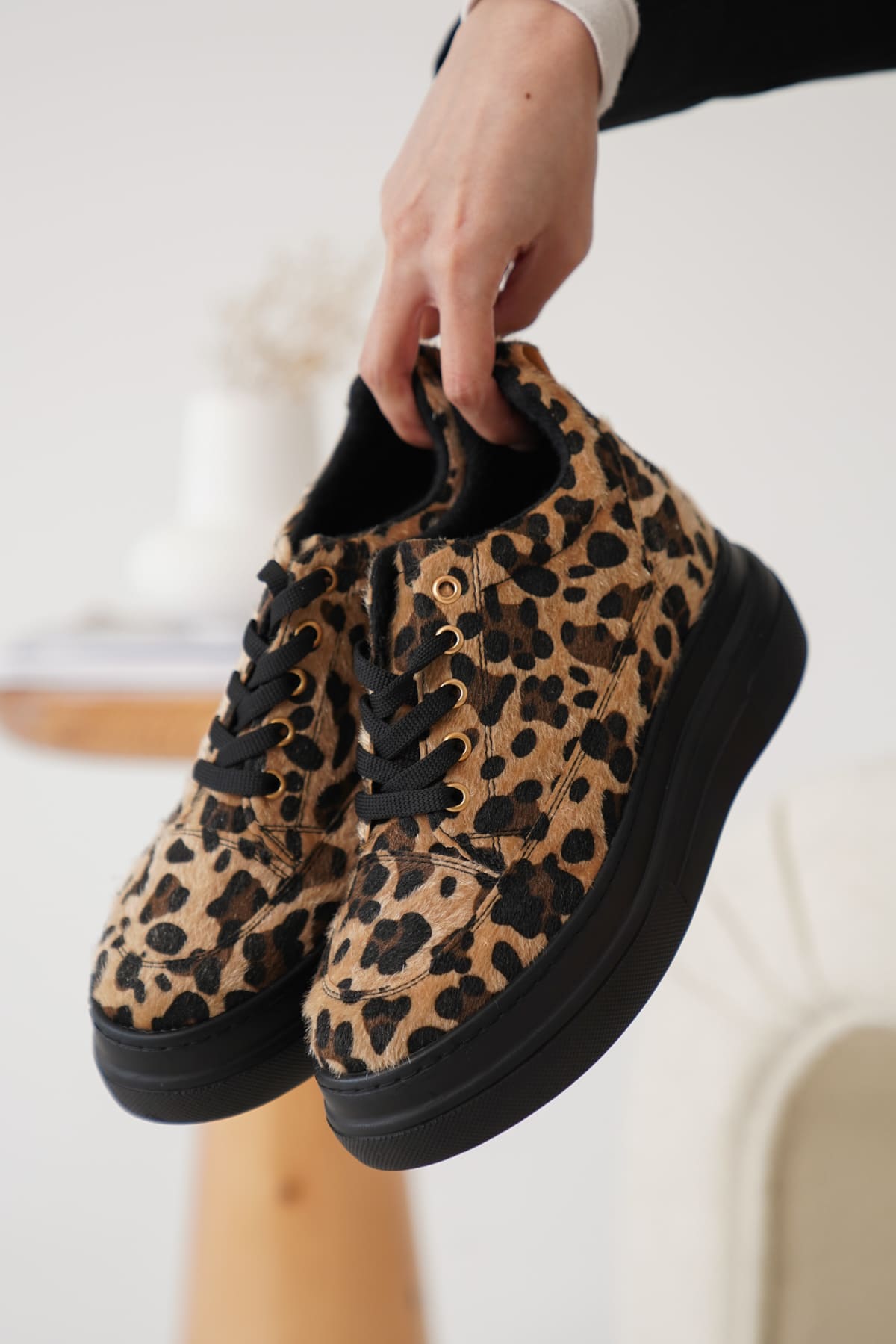 Kadın Gizli Topuk Siyah Taban Leopar Spor Ayakkabı TR10MS01K
