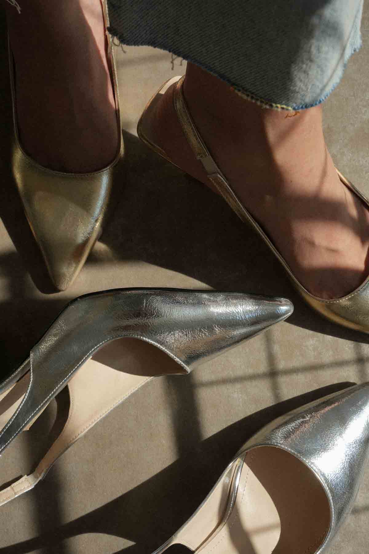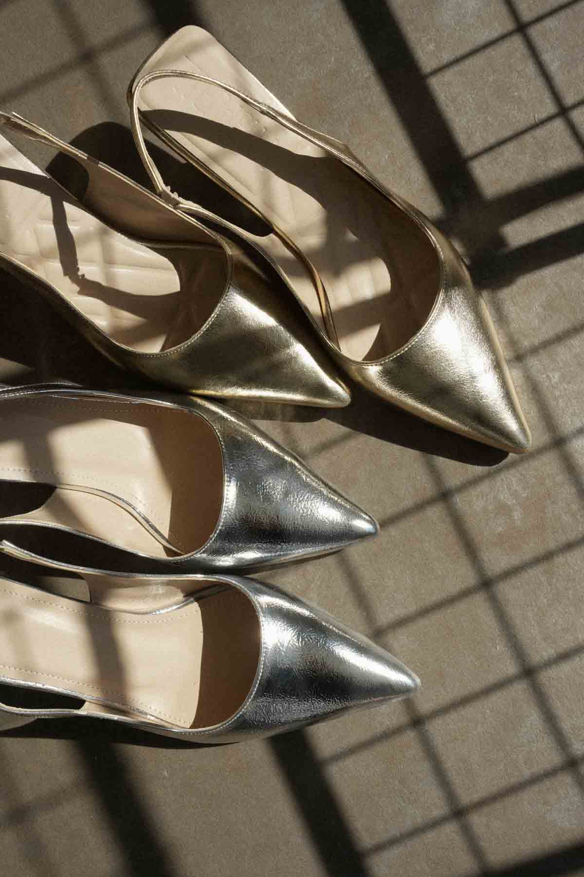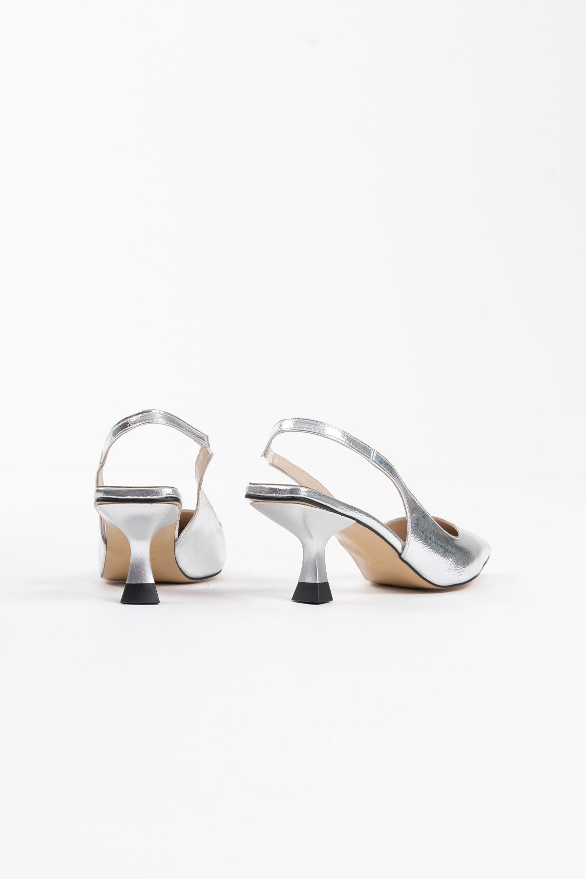 Kadın Gümüş Kırışık Rugan Topuklu Ayakkabı TR08MS08D