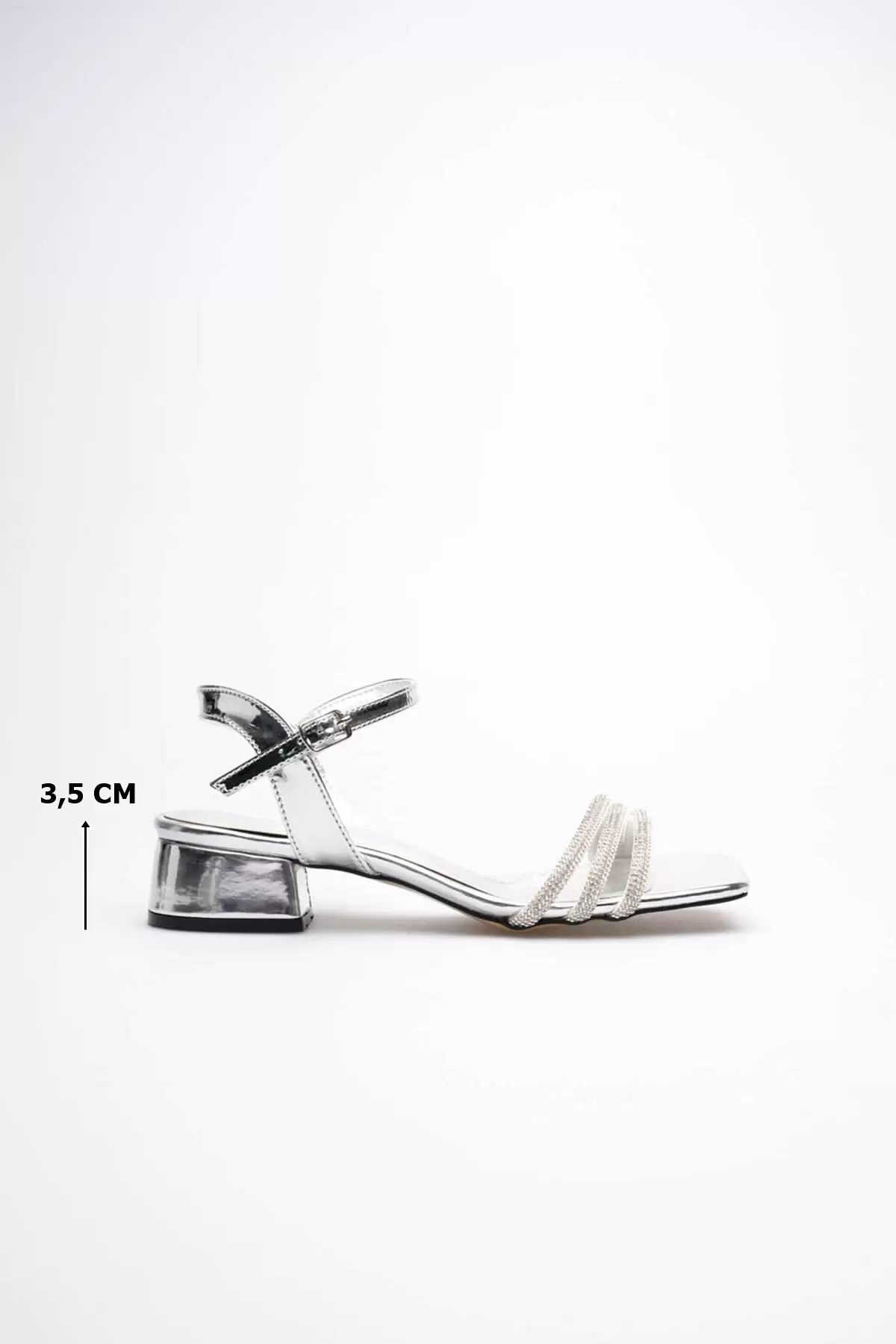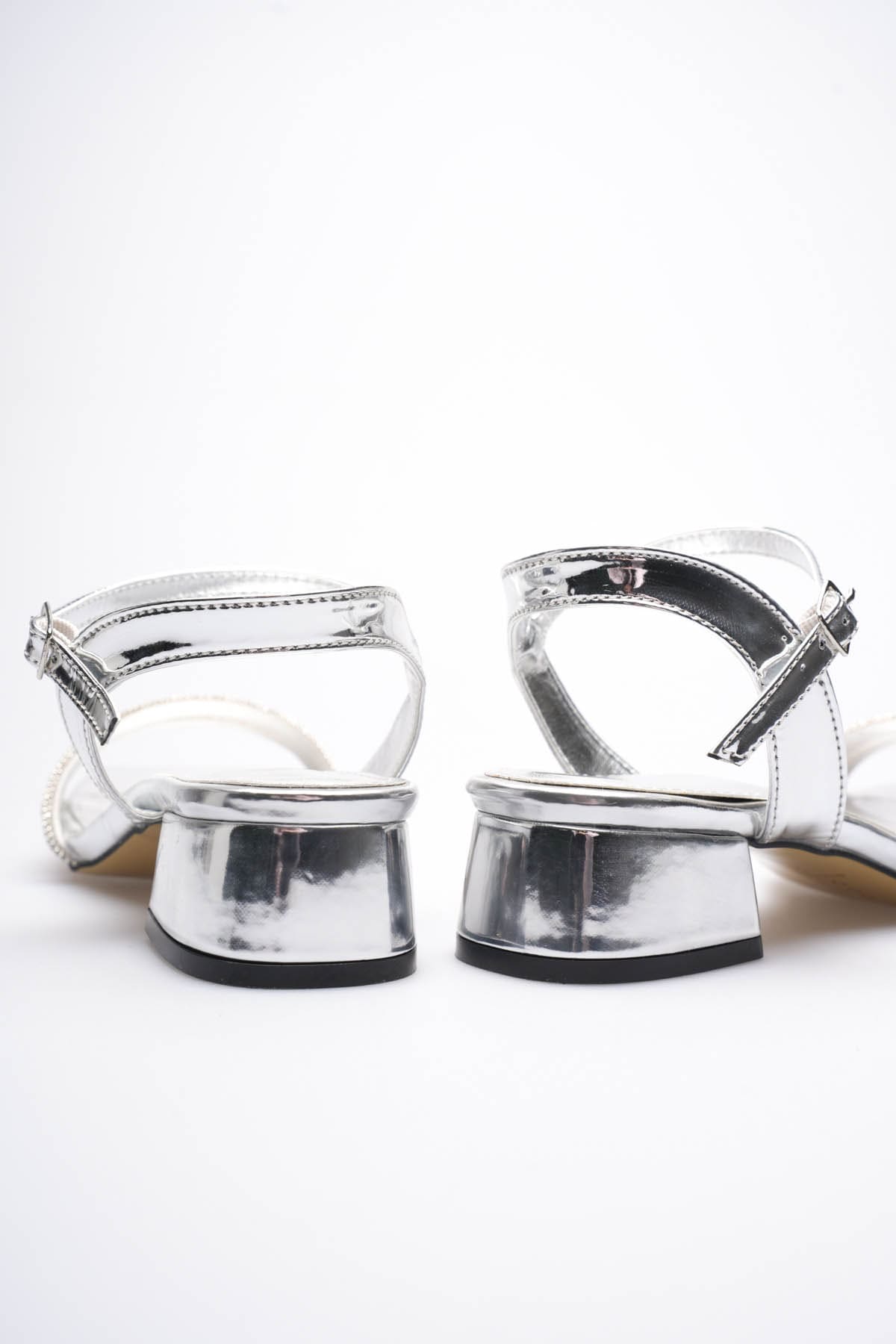 Kadın Gümüş Taş Detaylı Kalın Topuklu Şık Sandalet TR20MY26E
