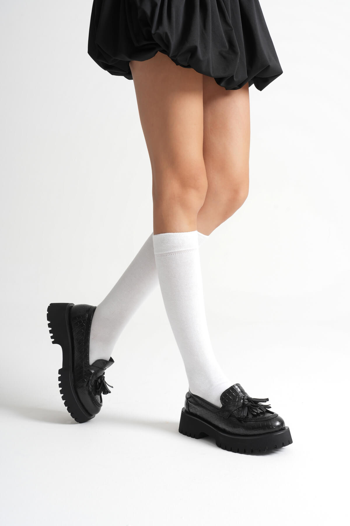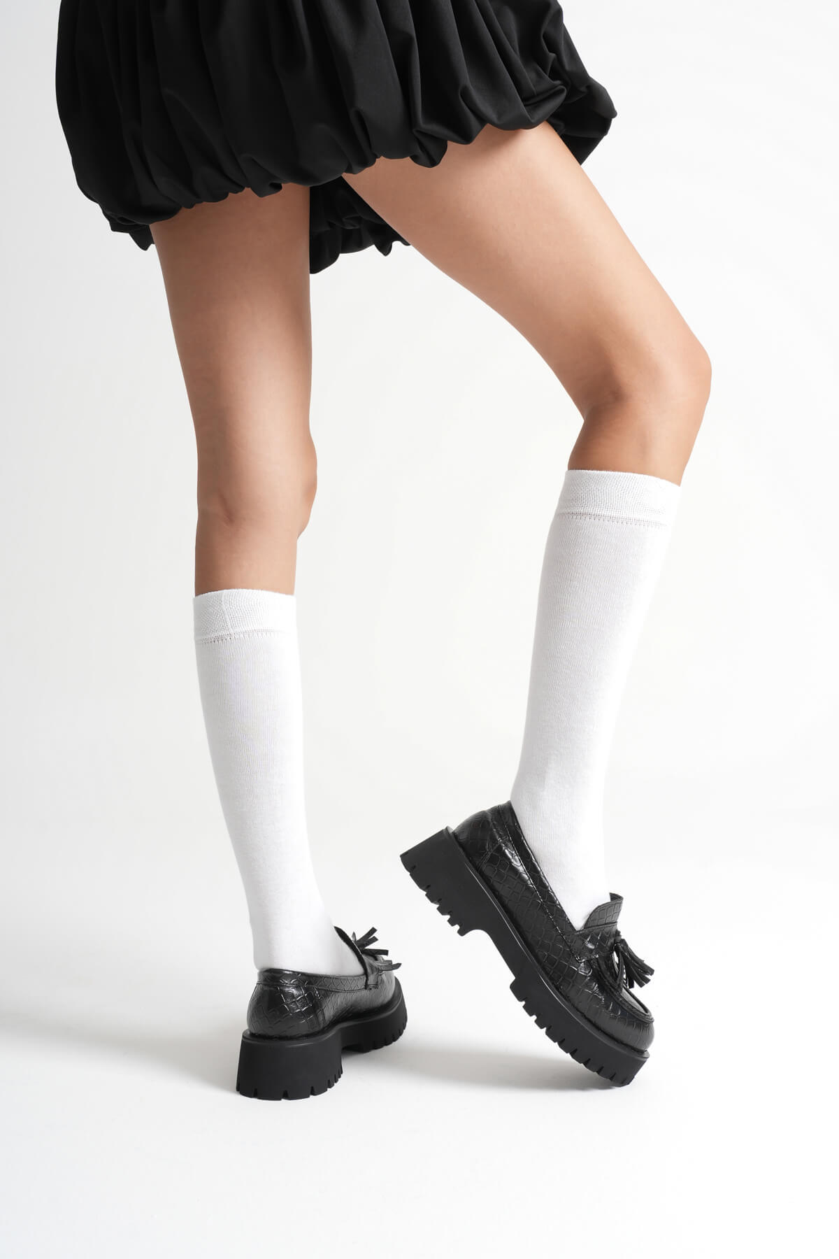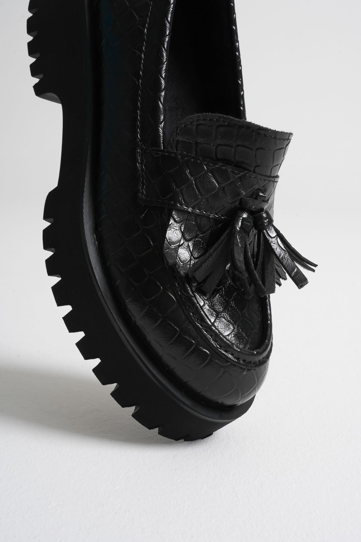 Kadın Günlük Siyah Kroko Baskılı Loafer Ayakkabı TR10MS03G