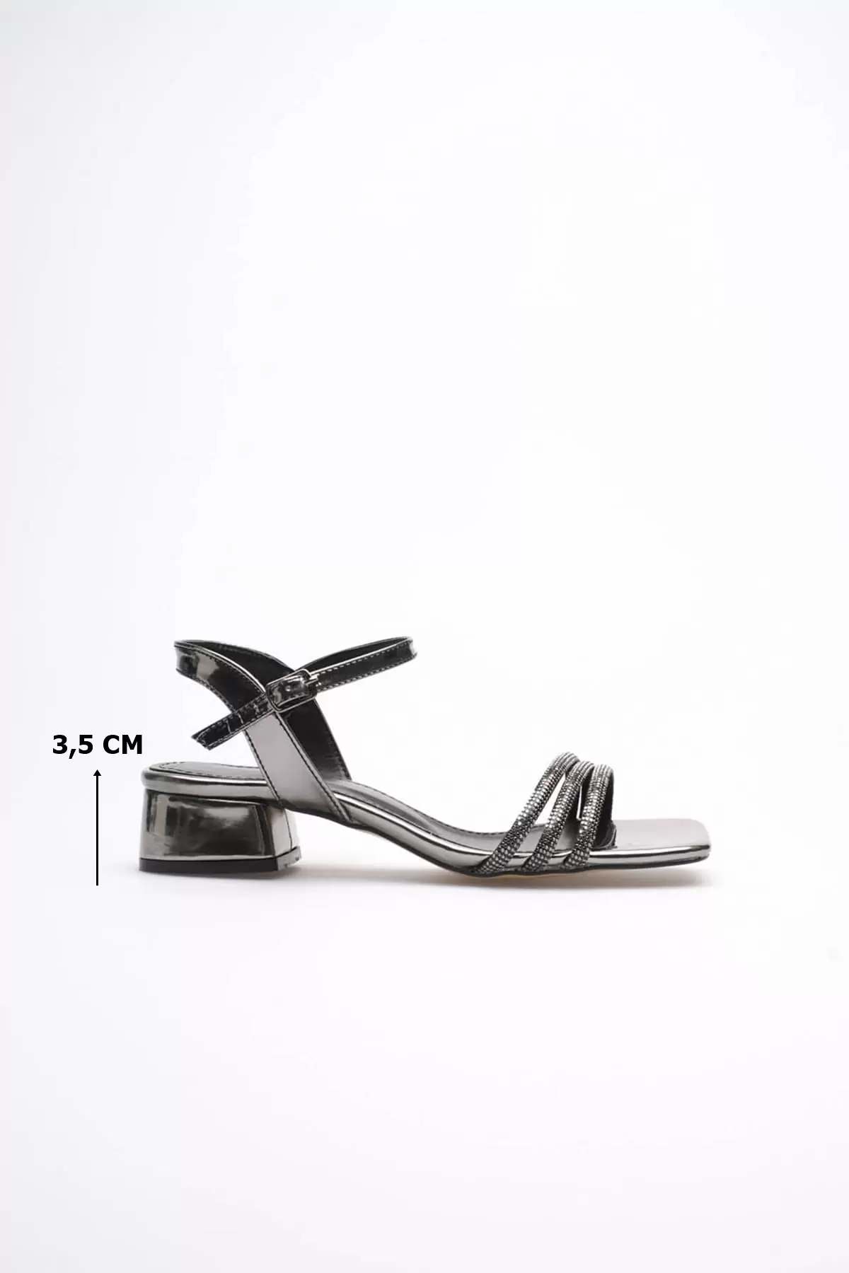 Kadın Platin Taş Detaylı Kalın Topuklu Şık Sandalet TR20MY26G