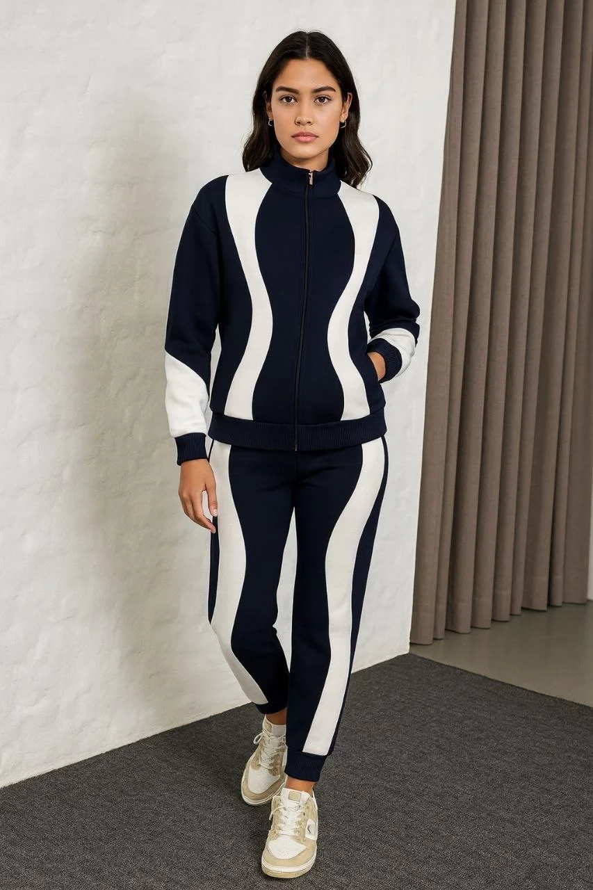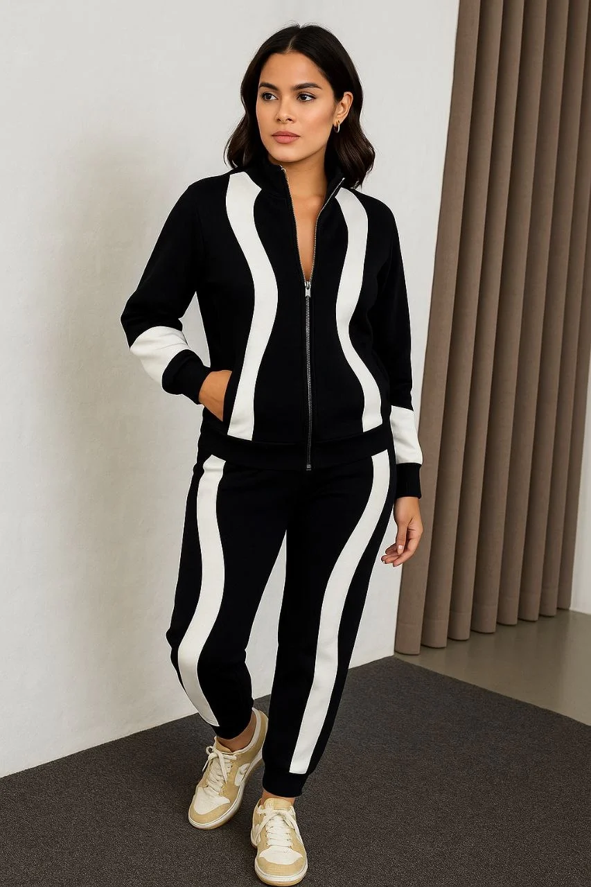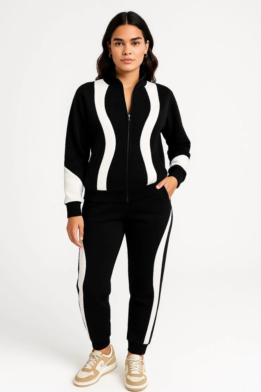 Kadın Premium Parçalı Eşofman Takım - Dik Yaka Fermuarlı Sweatshirt - Siyah