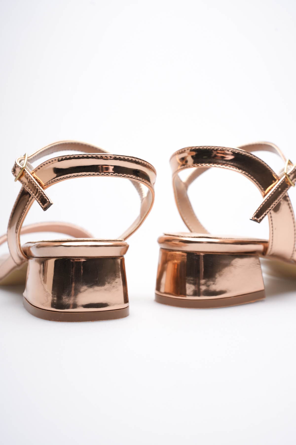 Kadın Rose Gold Taş Detaylı Kalın Topuklu Şık Sandalet TR20MY26F