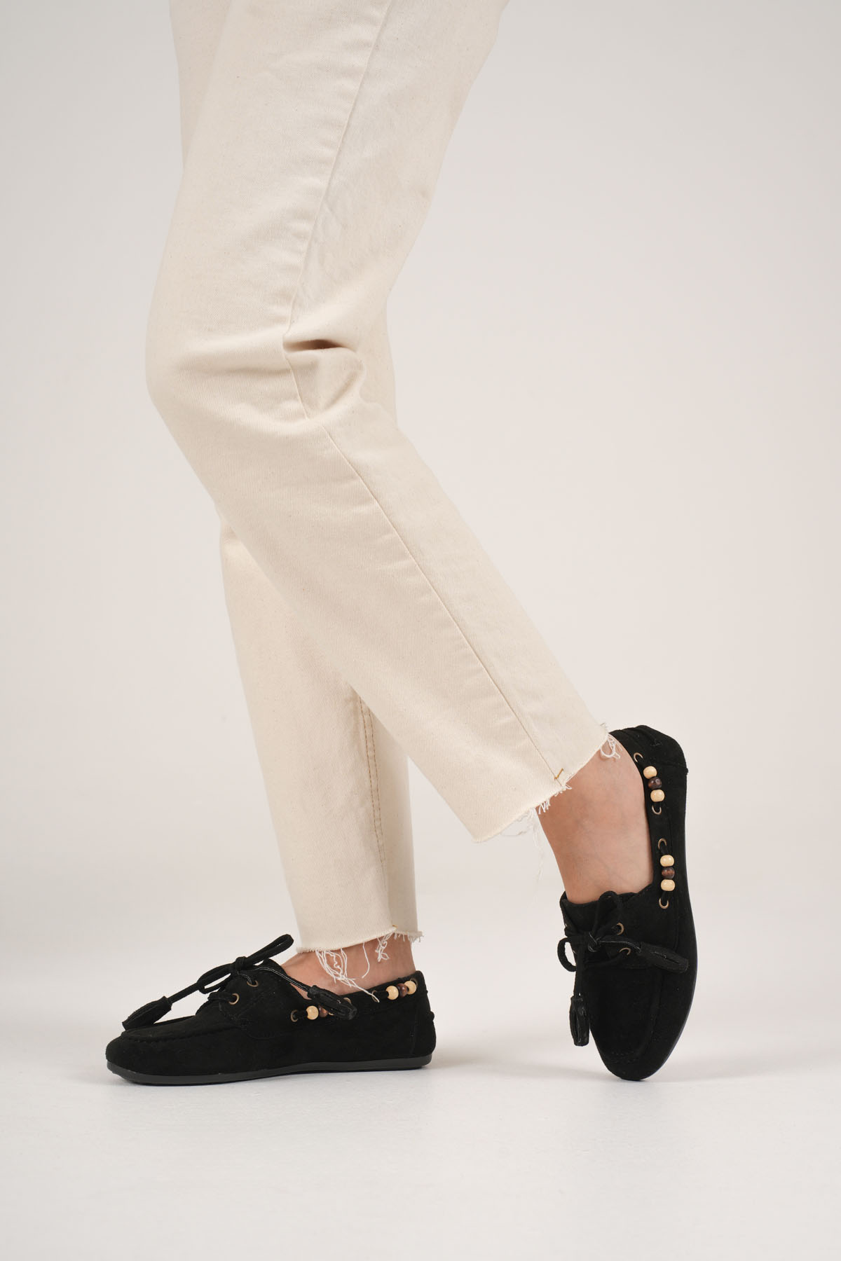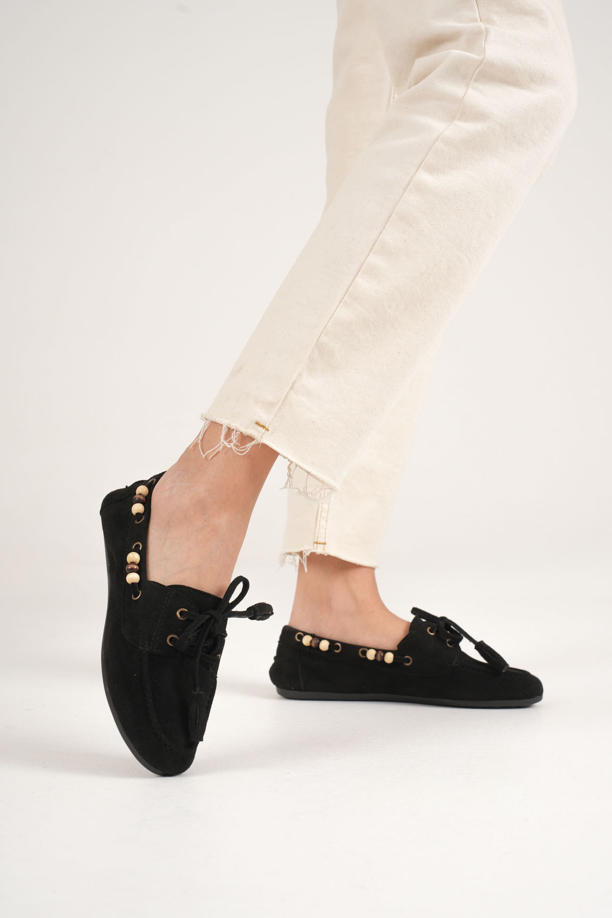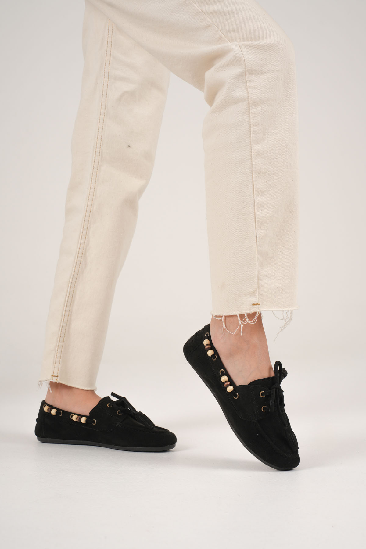 Kadın Siyah Boncuklu Günlük Süet Ayakkabı TR27MS07A