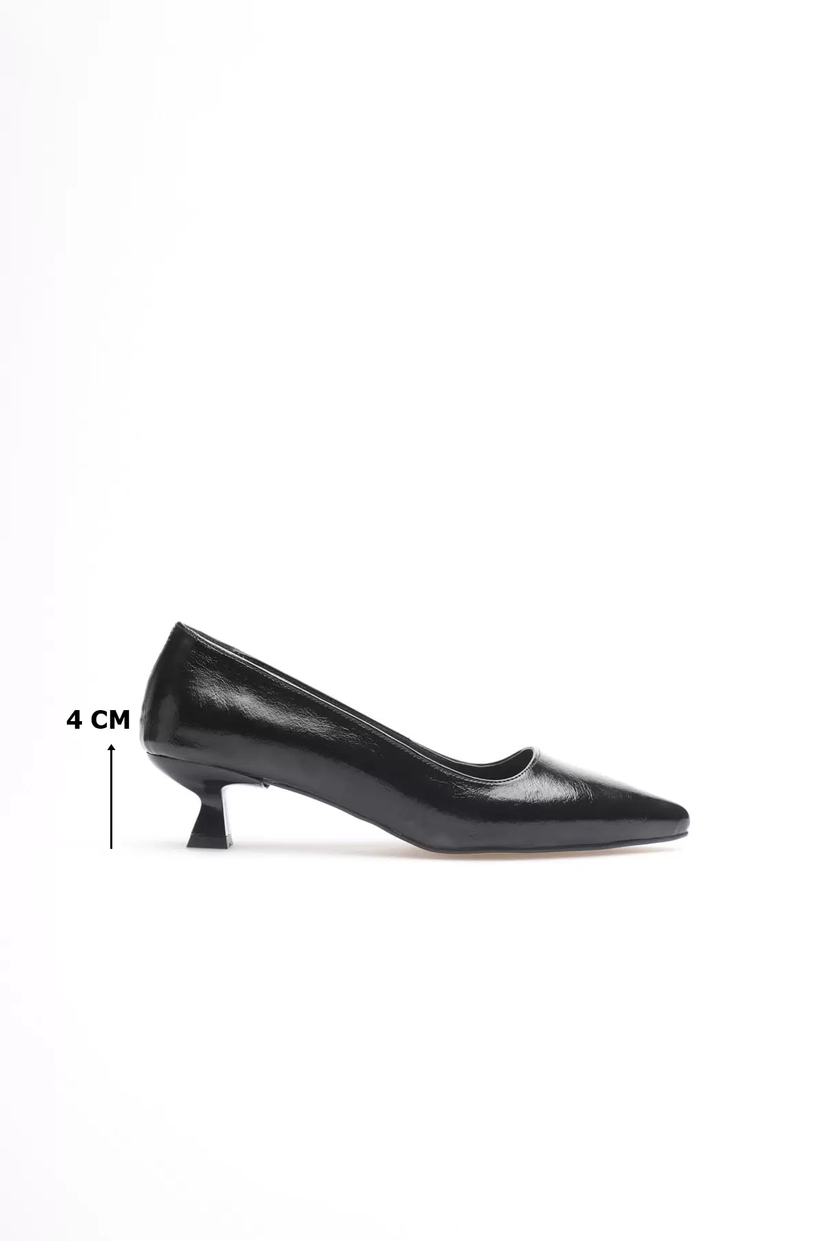 Kadın Siyah Kırışık Rugan Kısa Topuklu Stiletto Ayakkabı TR20MS03C