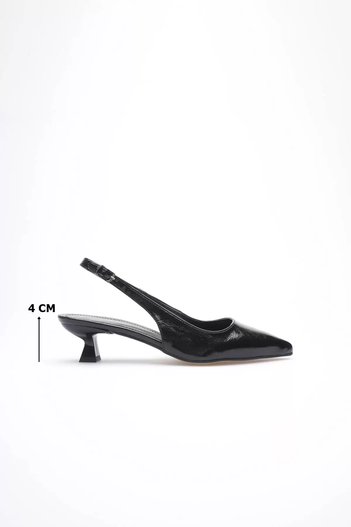Kadın Siyah Kırışık Rugan Sivri Burun Slingback Kısa Topuklu Ayakkabı TR20MS04C