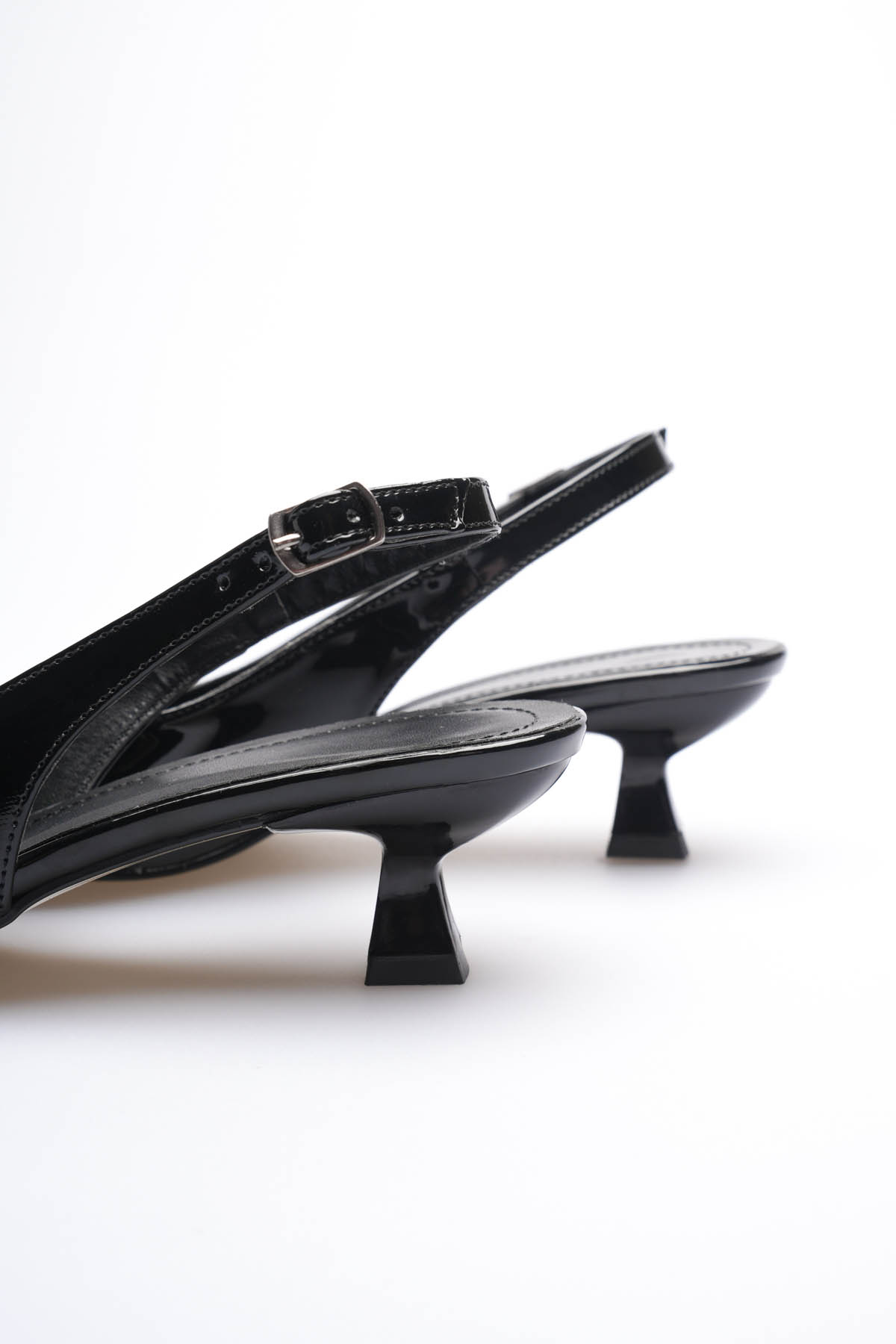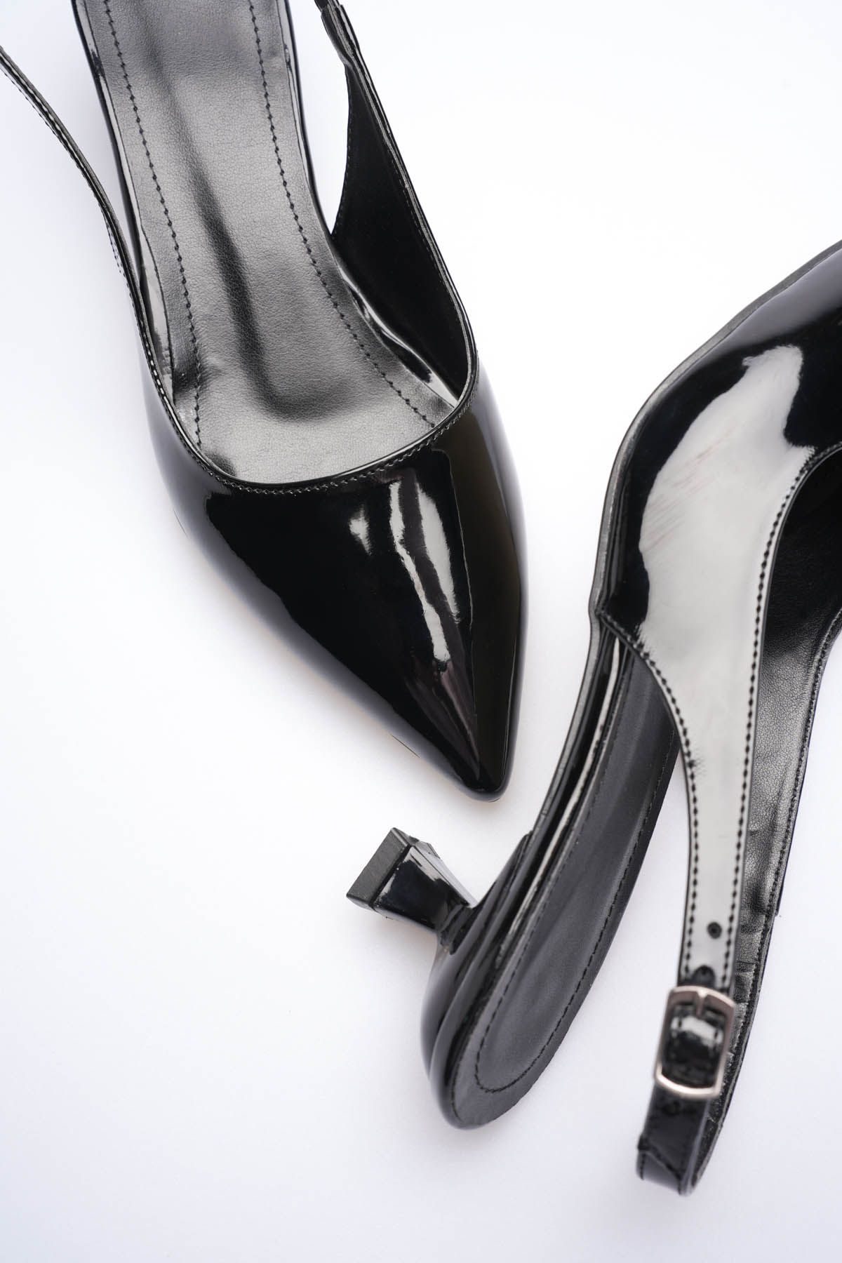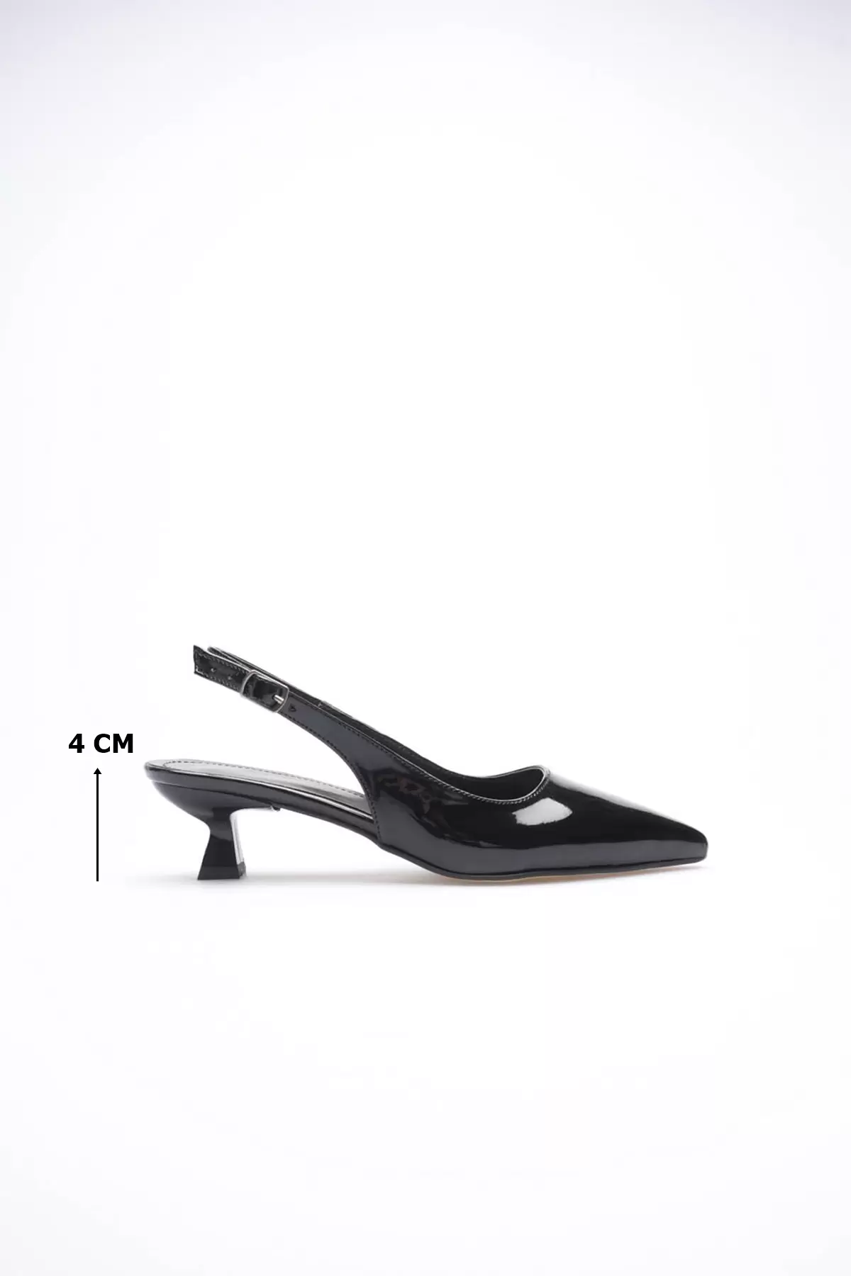 Kadın Siyah Rugan Sivri Burun Slingback Kısa Topuklu Ayakkabı TR20MS04E