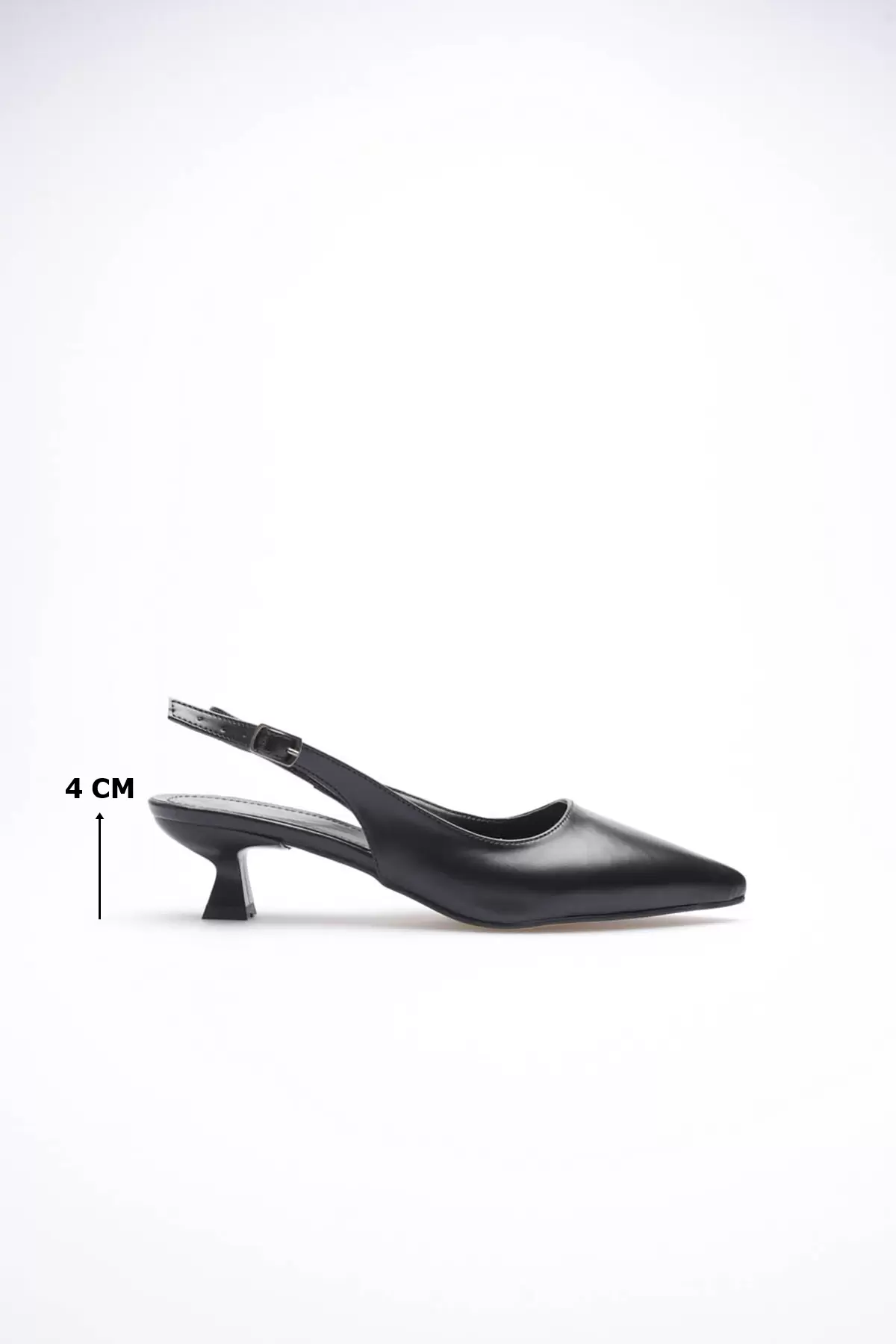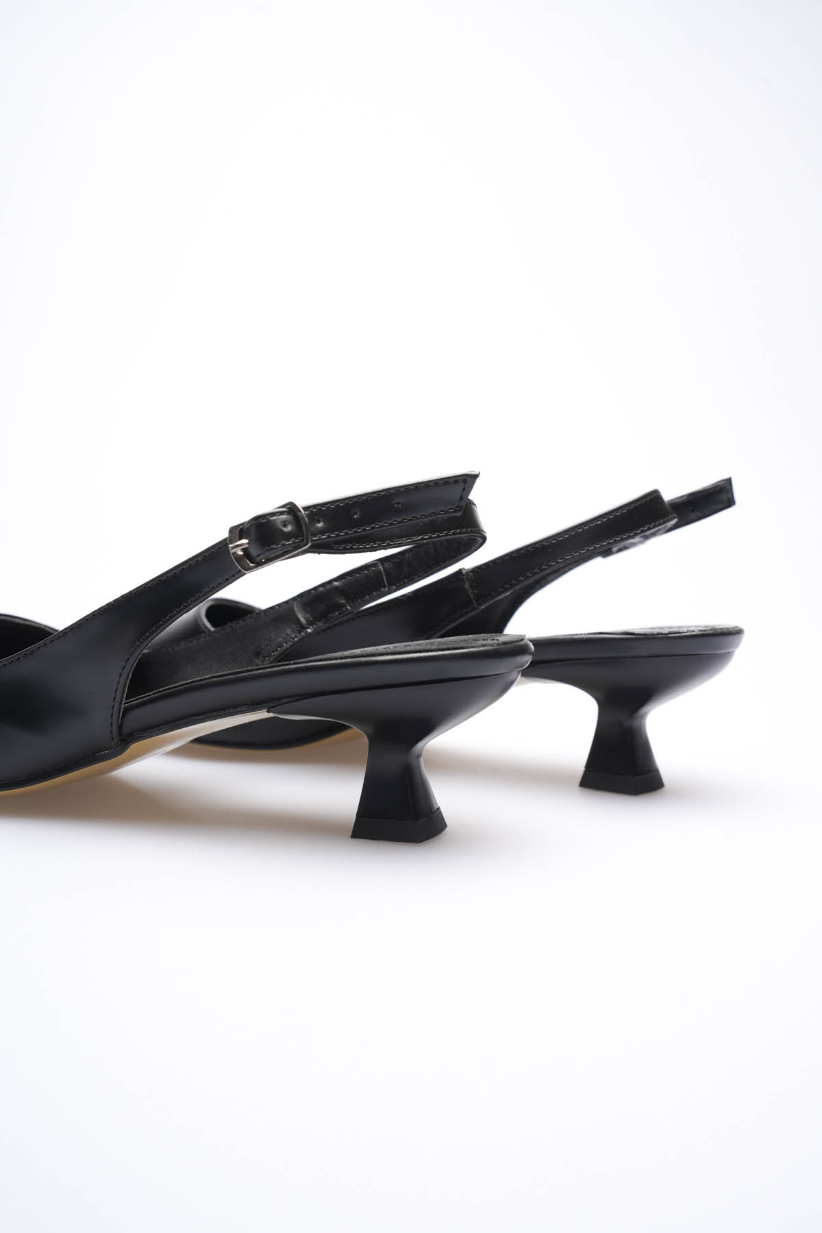 Kadın Siyah Sivri Burun Slingback Kısa Topuklu Ayakkabı TR20MS04A