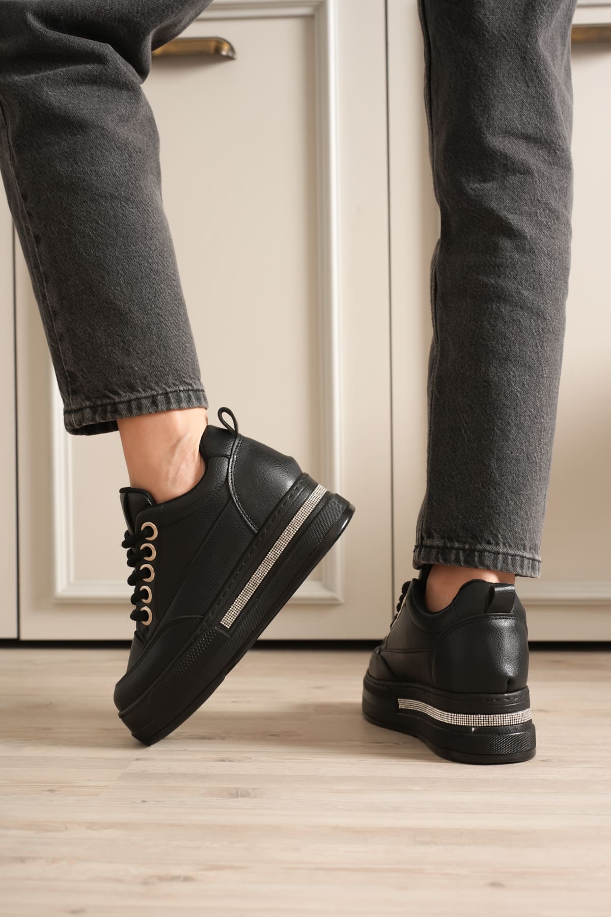 Kadın Siyah Tabanlı Siyah Gizli Topuklu Sneaker TR04MS01D