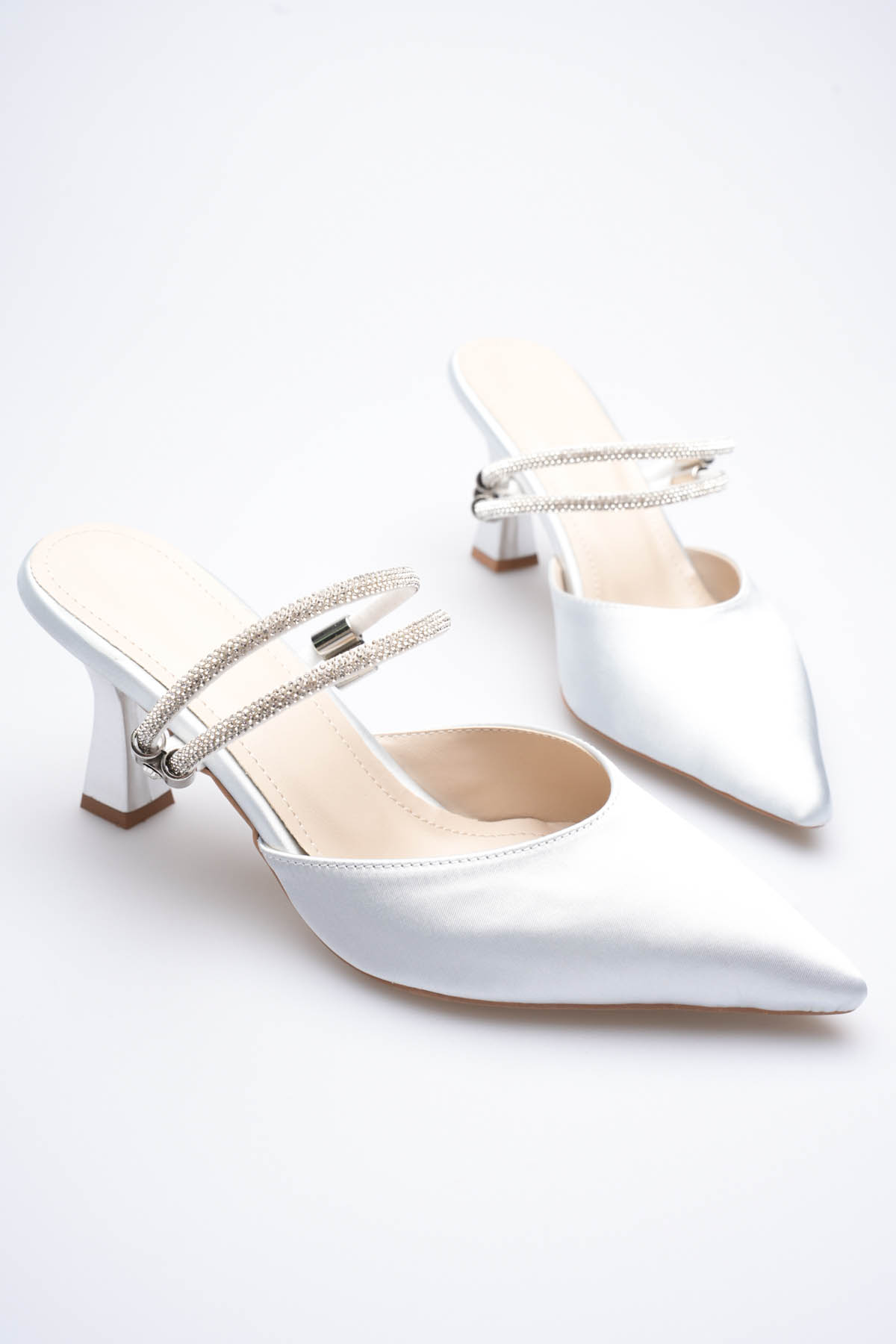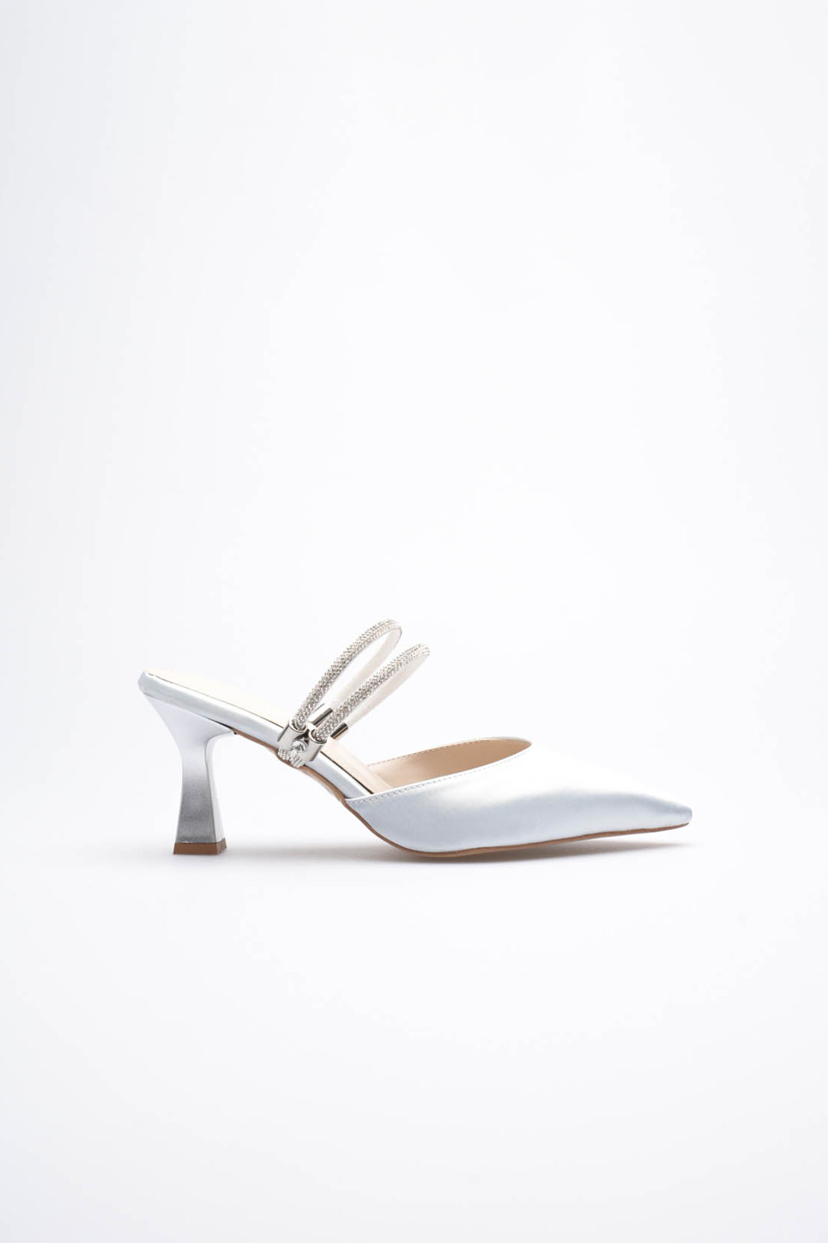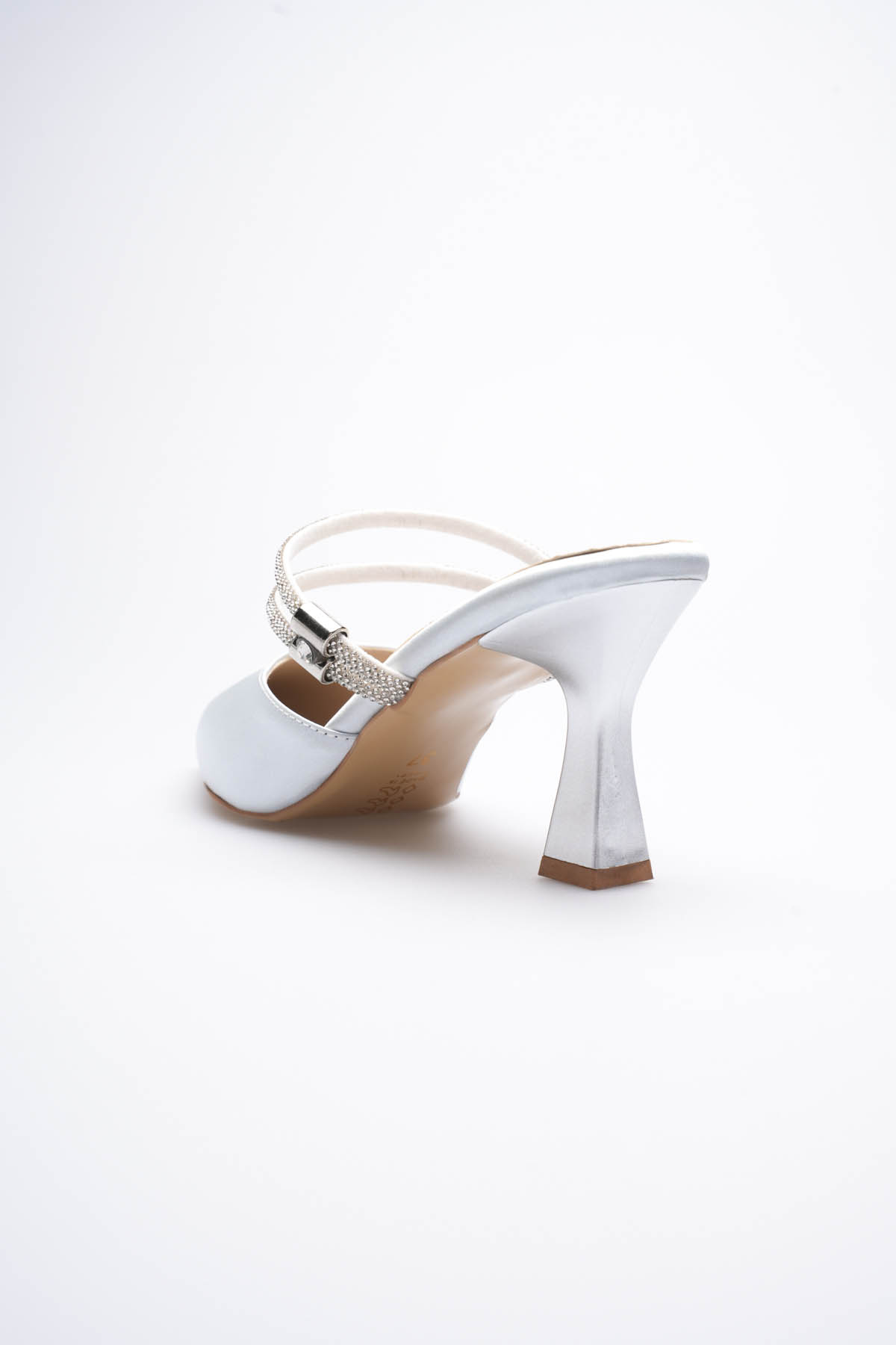 Kadın Taşlı Gri Saten Topuklu Ayakkabı TR12MS04C