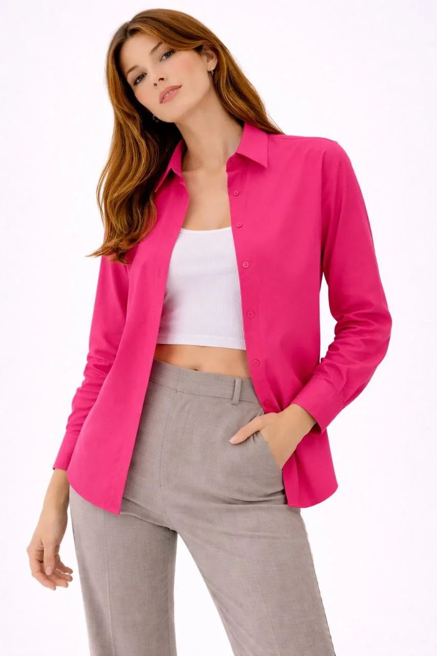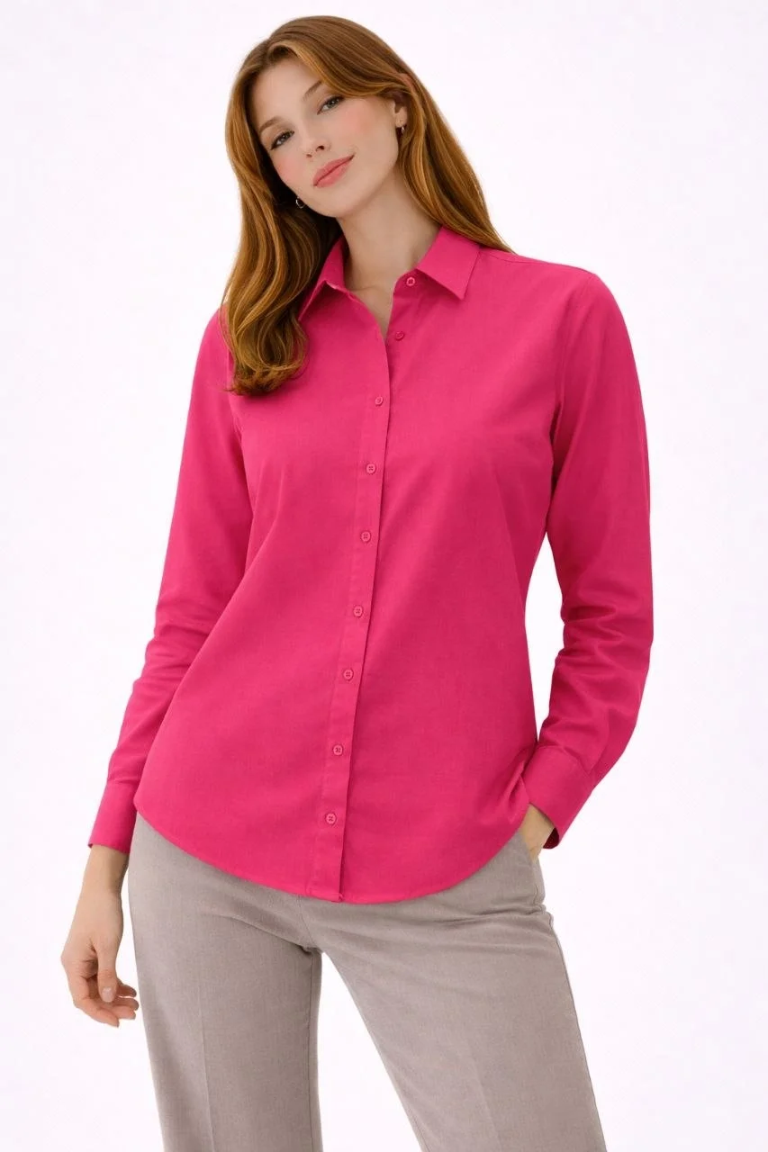 Kadın Uzun Kollu Gömlek Düğmeli Klasik Yaka Günlük ve Ofis Şıklığına uygun - Fuşya