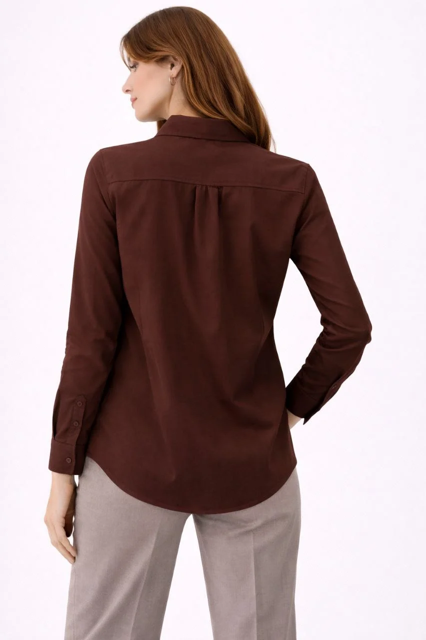 Kadın Uzun Kollu Gömlek Düğmeli Klasik Yaka Günlük ve Ofis Şıklığına uygun - Kahverengi