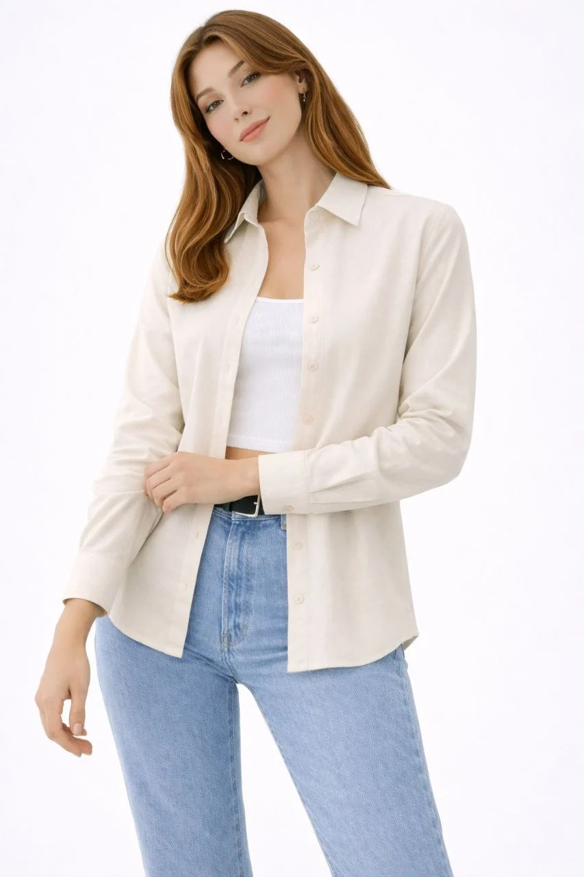 Kadın Uzun Kollu Gömlek Düğmeli Klasik Yaka Günlük ve Ofis Şıklığına uygun - Krem