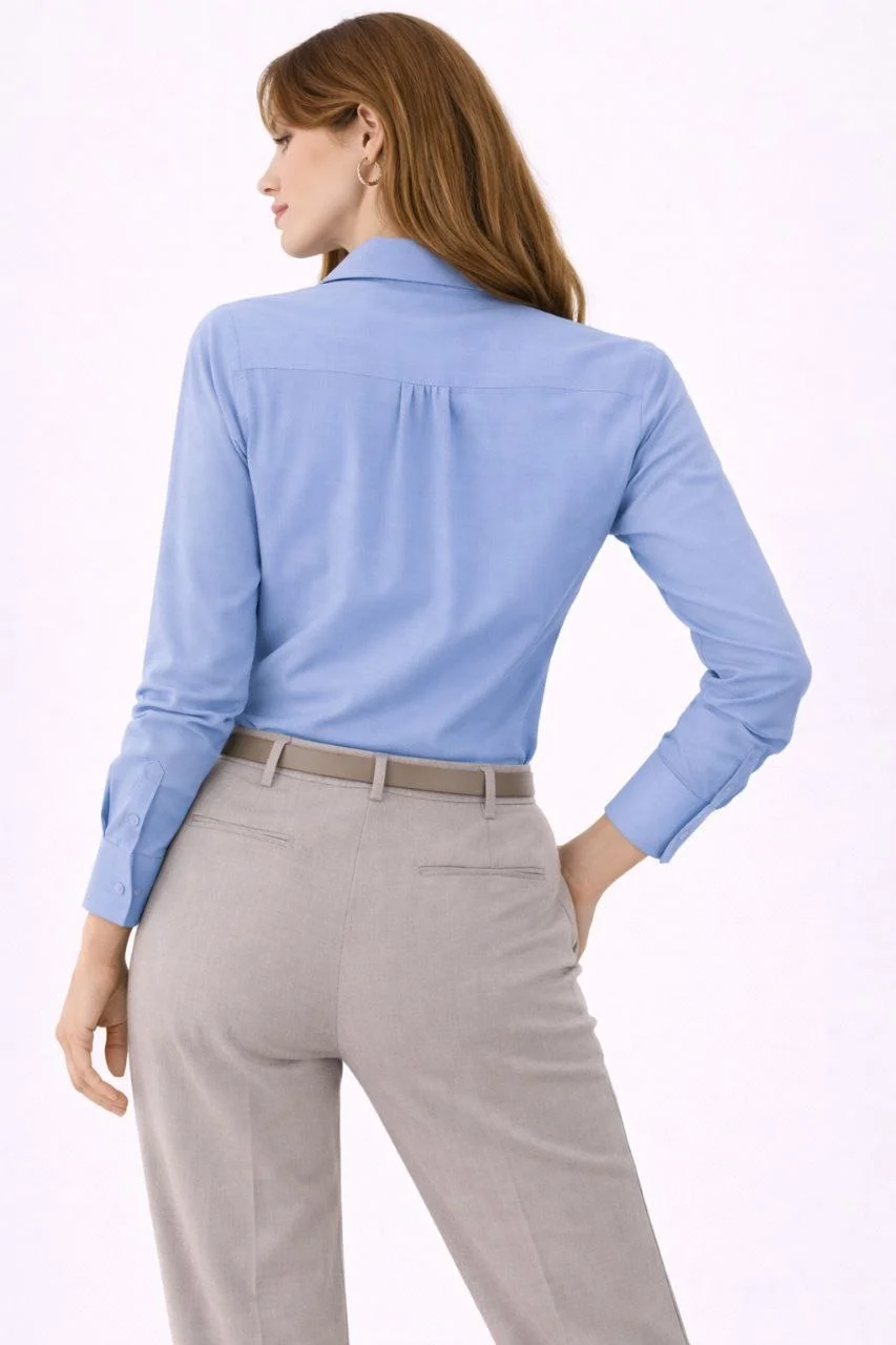 Kadın Uzun Kollu Gömlek Düğmeli Klasik Yaka Günlük ve Ofis Şıklığına uygun - Mavi