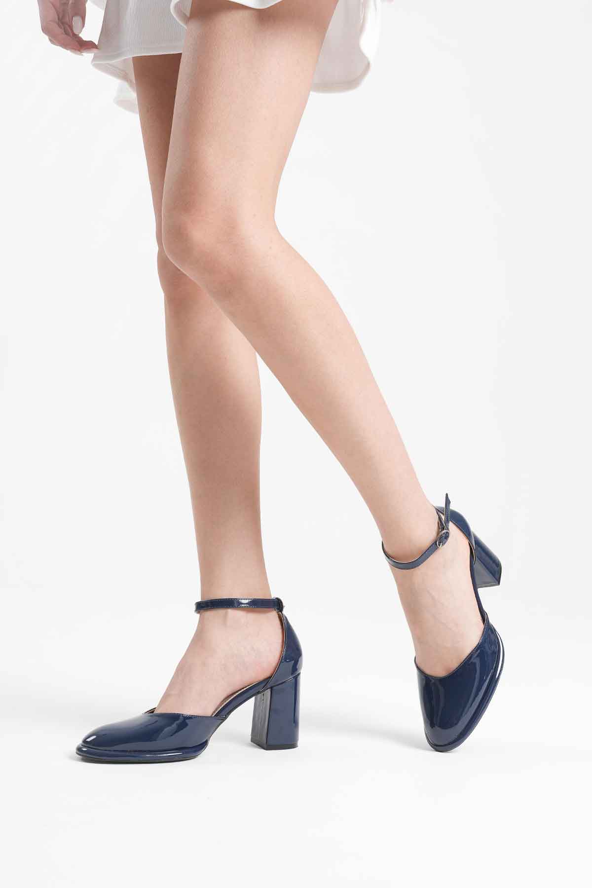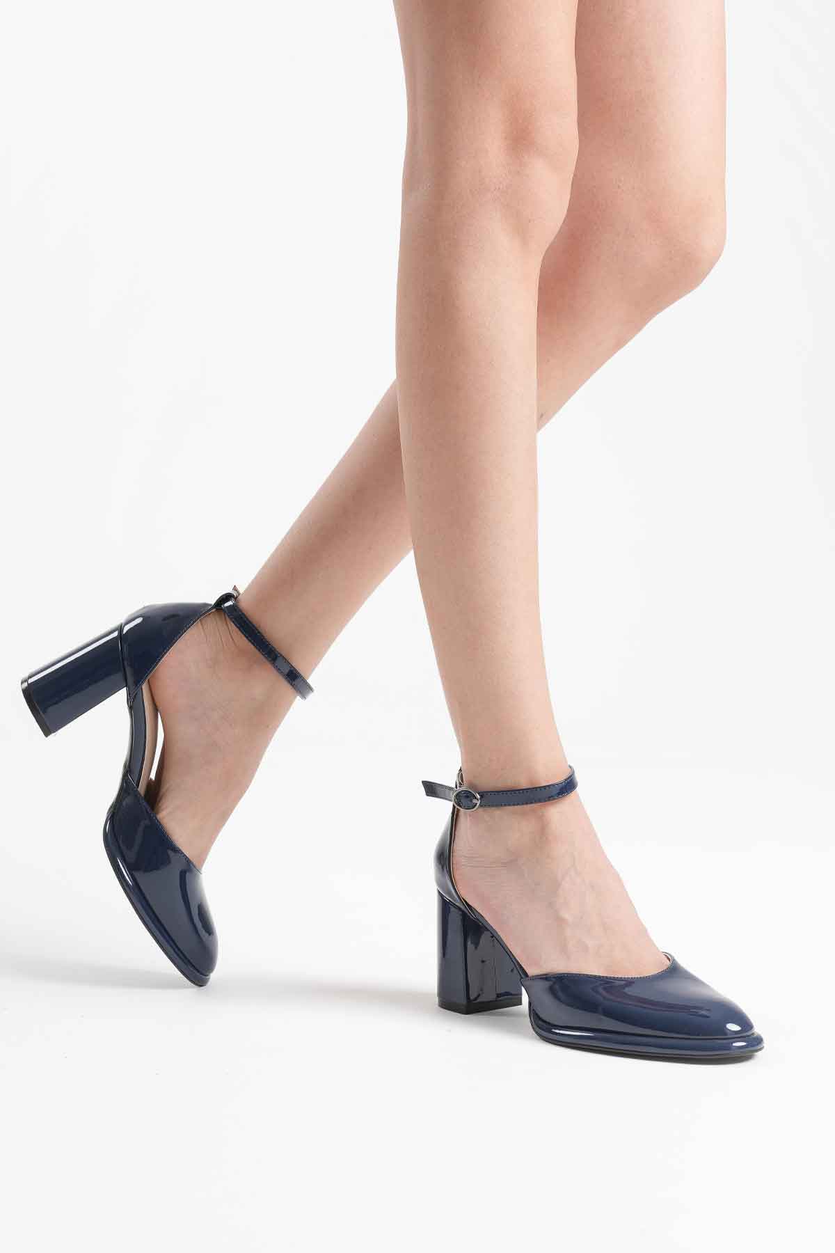 Lacivert Rugan Kadın Topuklu Ayakkabı TR18MS04C