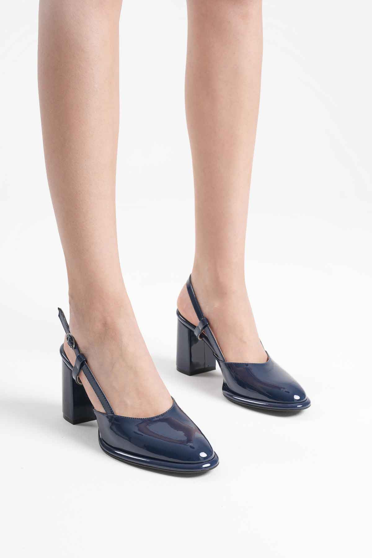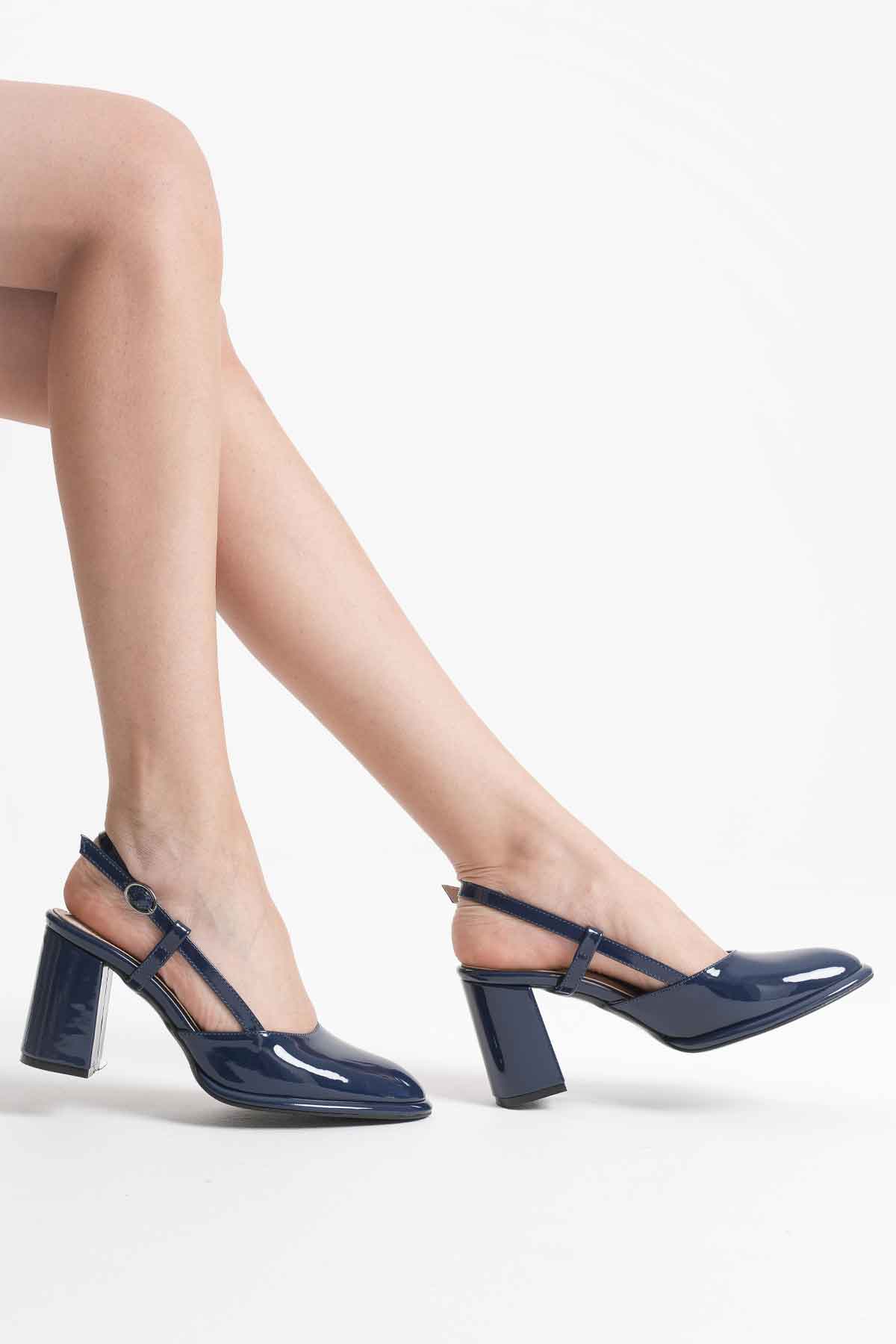 Lacivert Rugan Kadın Topuklu Ayakkabı TR18MS18C