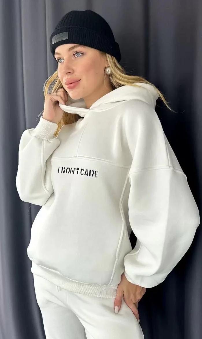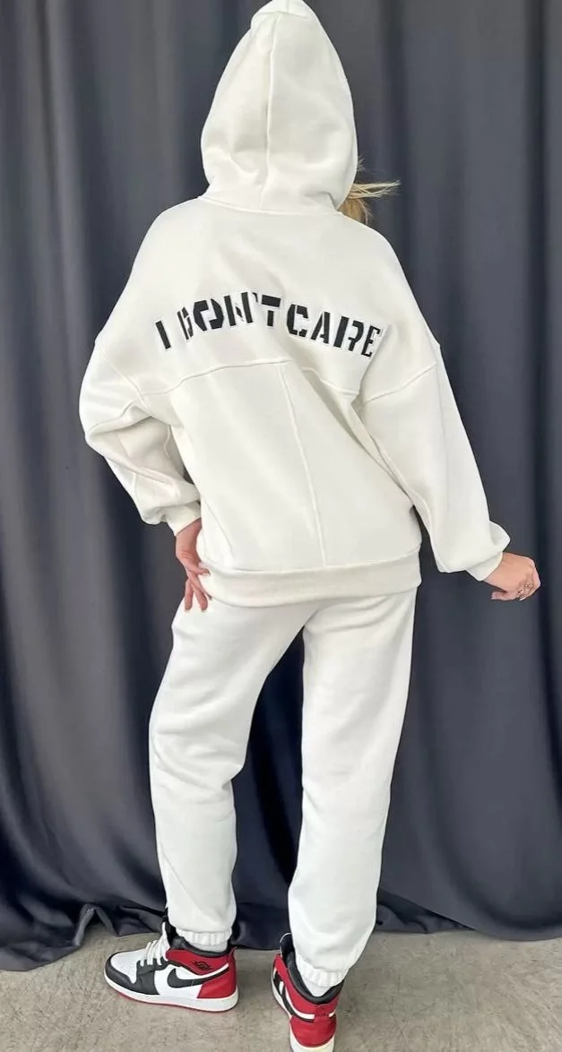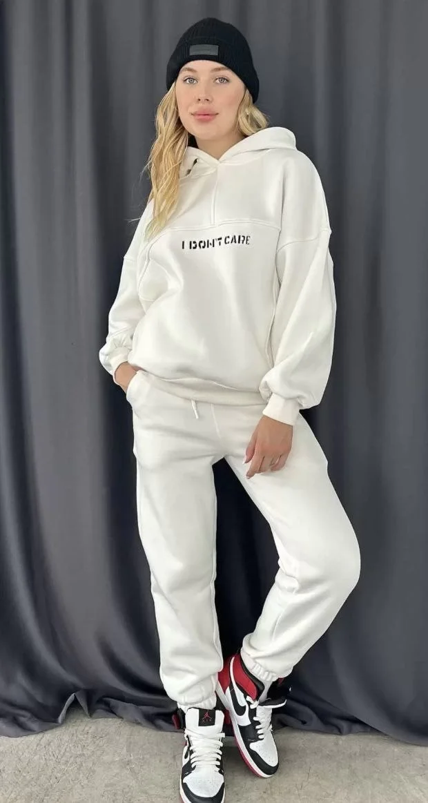 Nakış İşlemeli Üç İplik Sweat Takım- Beyaz