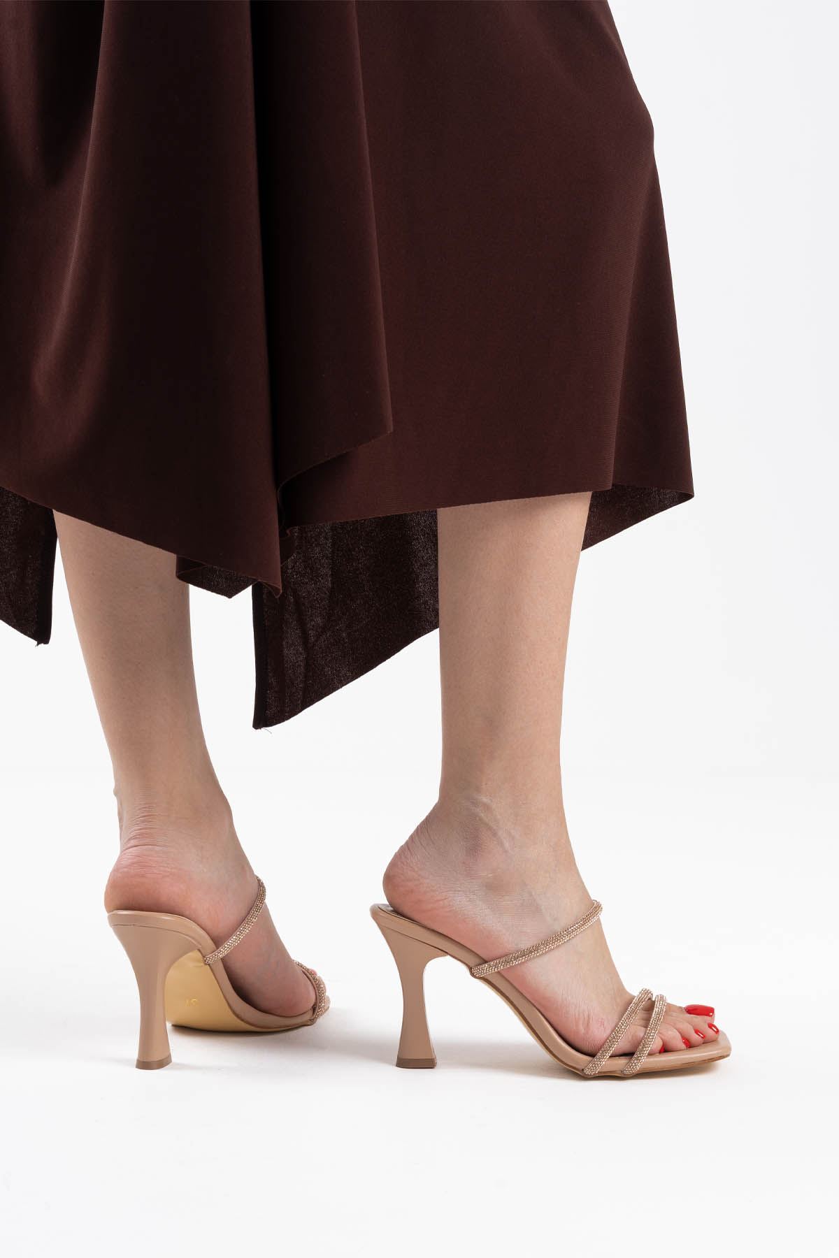 Nude Taşlı İnce Bantlı Kadın Topuklu Terlik TR20MY01D