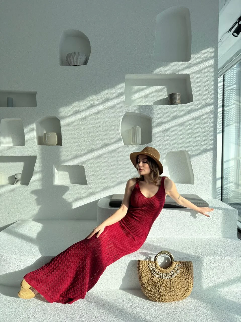Örgülü Uzun Triko Elbise - Bordo