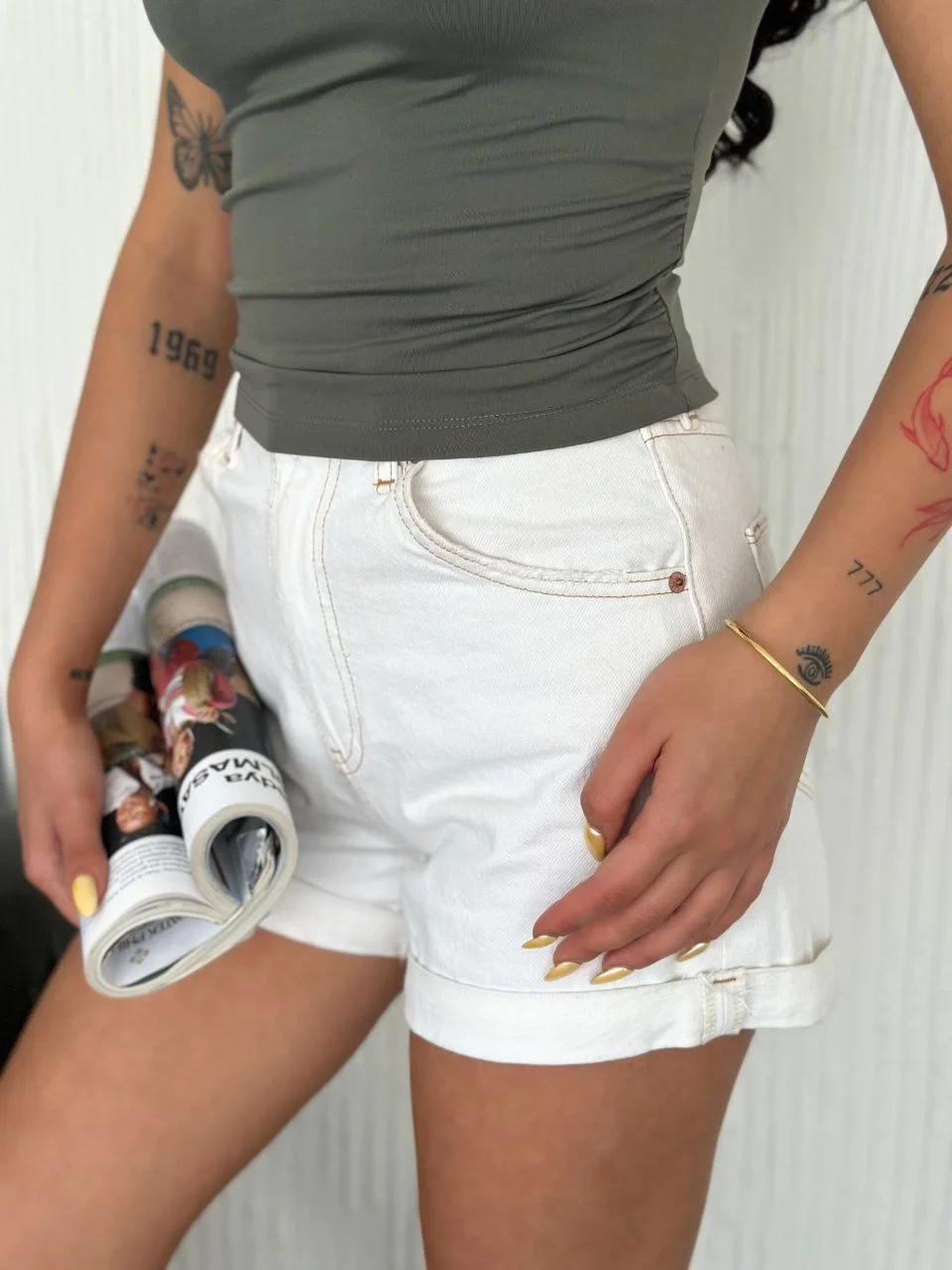Osy Modal Yumuşak Dokulu Bisiklet Yaka Kadın Sıfır Kol Bluz Omuz Toka Aksesuar - Haki