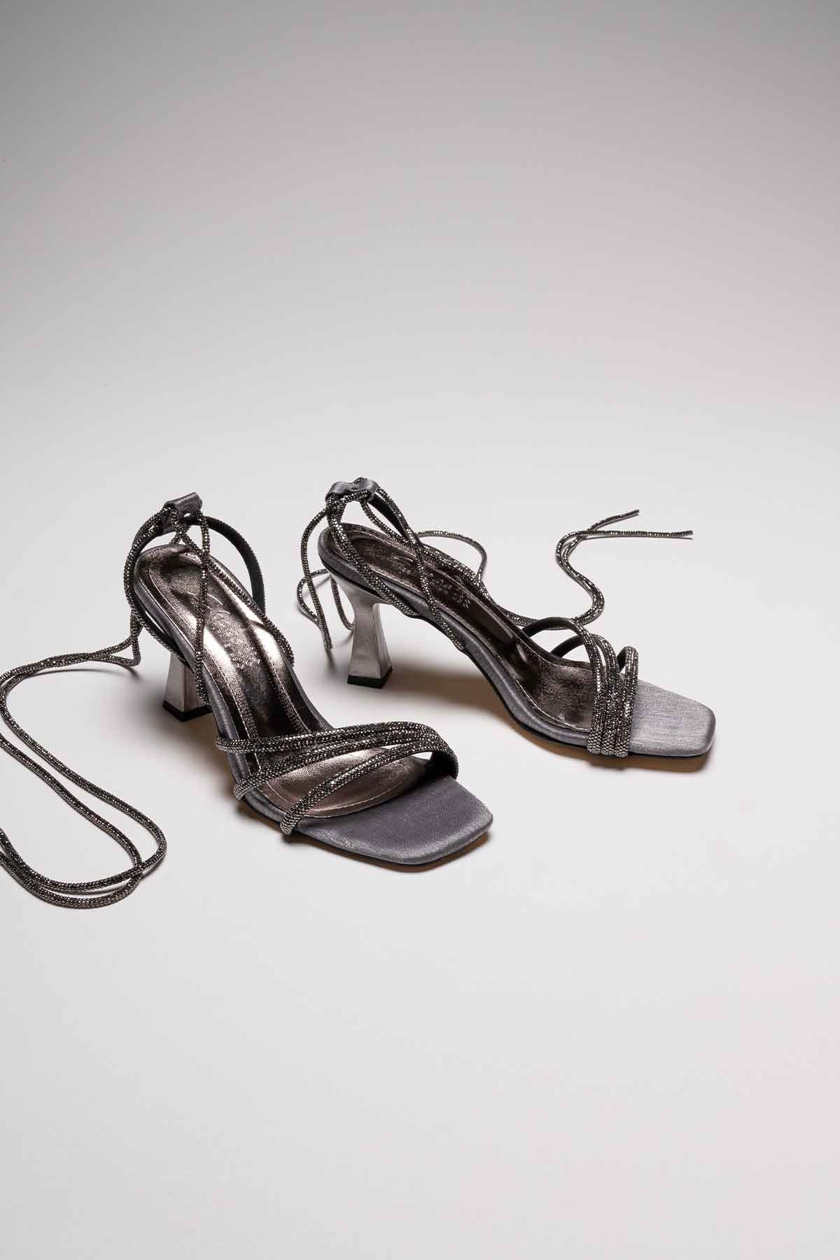Platin Taşlı Kadın Topuklu Sandalet TR25MY02D